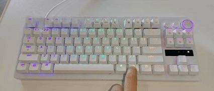 例如,FN + Tab+上下方向键/旋钮,可调节10档触发键程;FN+ins等,可切换为不同渐变灯光,LED指示灯对应着颜色。