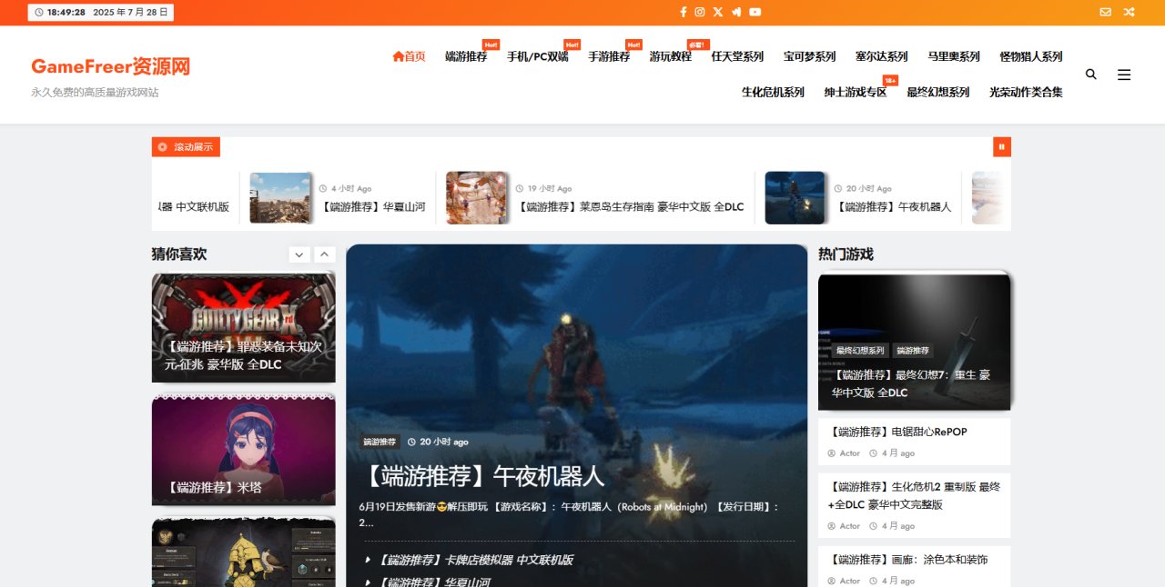 这是一个专门分享免费高质量中文游戏资源的网站,无需注册,无需登入,就能直接下载,整个网站的分类做的十分详细从端游到手游从PC到手机双端覆盖,还专门设置任天堂系列,宝可梦系列等等热门专区,每款游戏都新标配了版本号,设备最低配置就算你是新手放心玩
