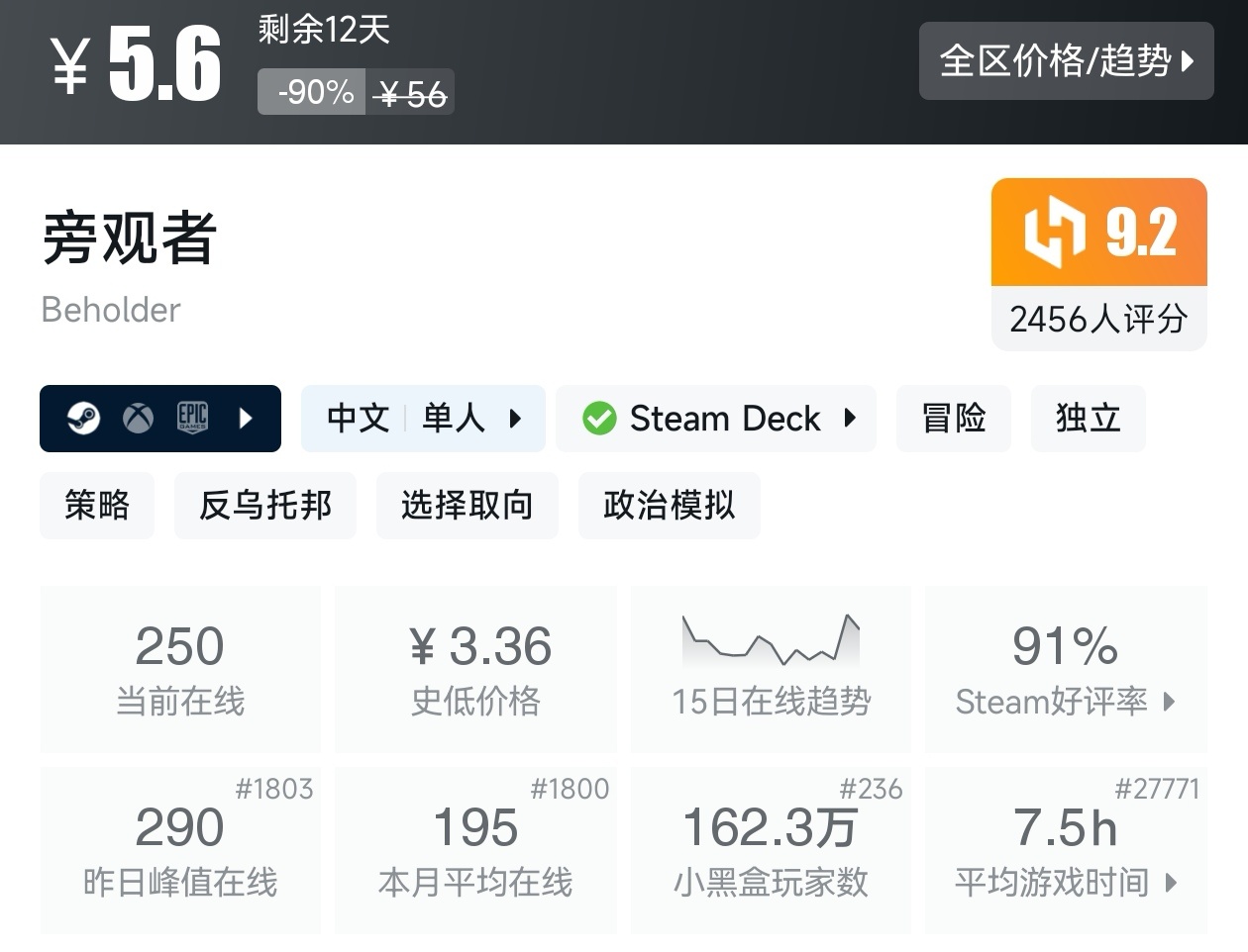 游戏为黑盒商城折扣。
