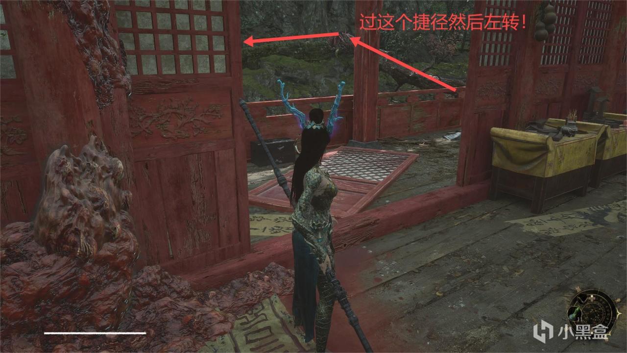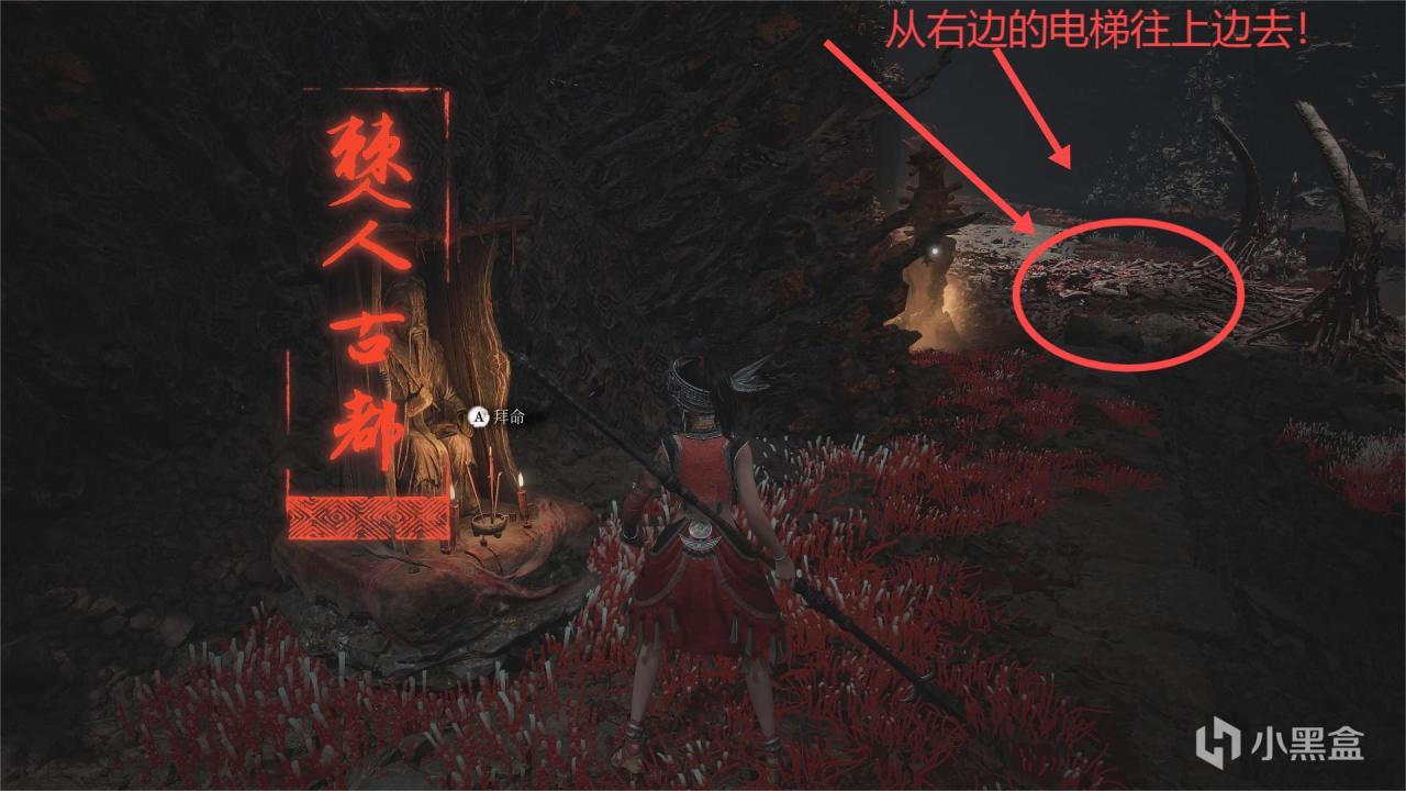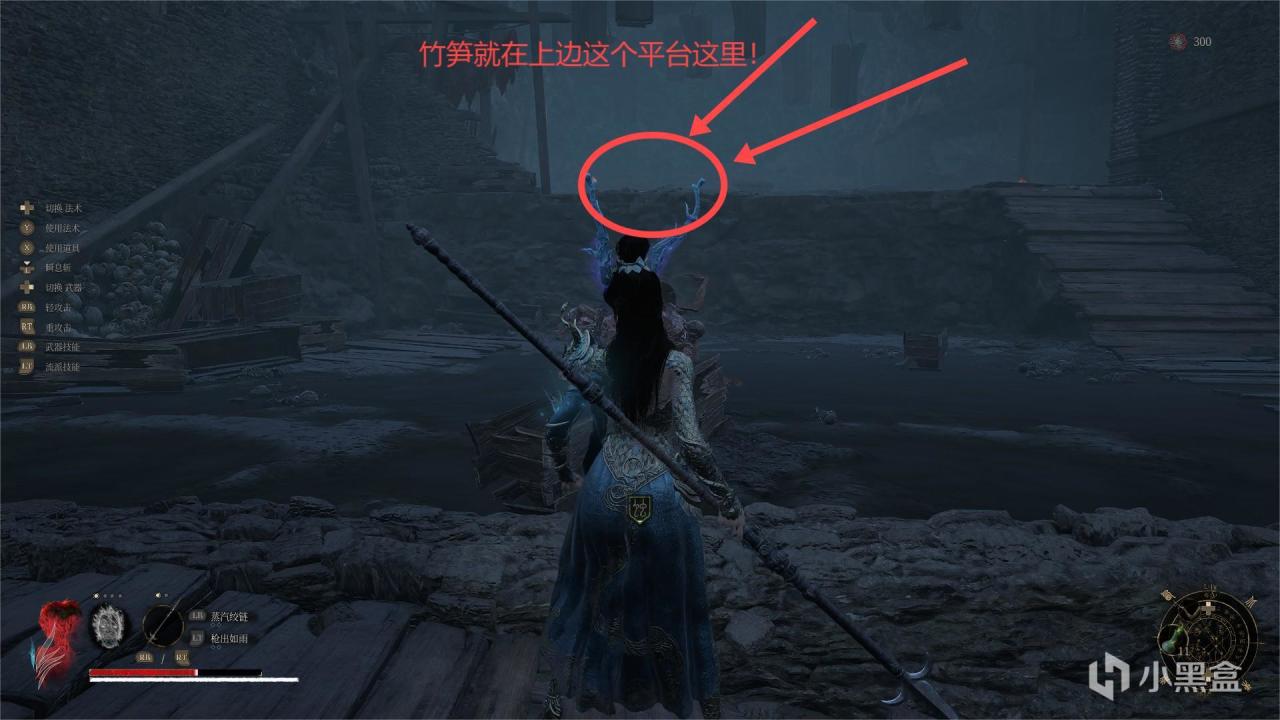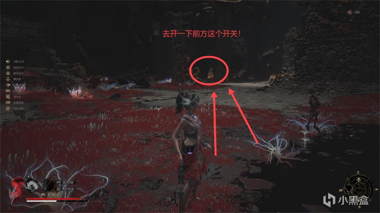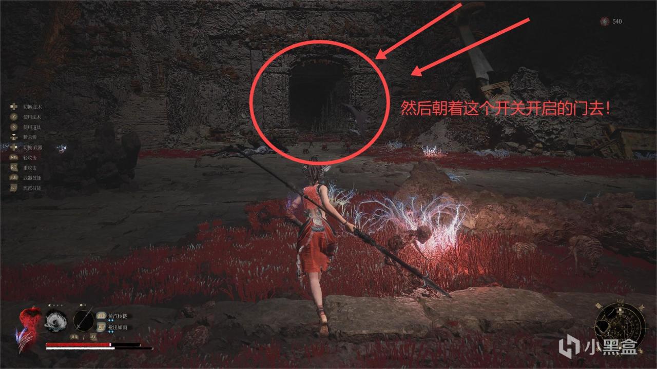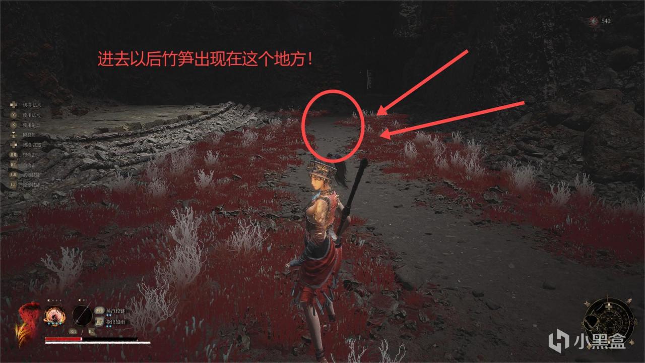 我們傳送到古都深處,然後開啓圖中的開關以後會開啓兩扇門,我們去周圍我圈圈標記的這個房間,進去以後右轉就是竹筍出現的地方!
