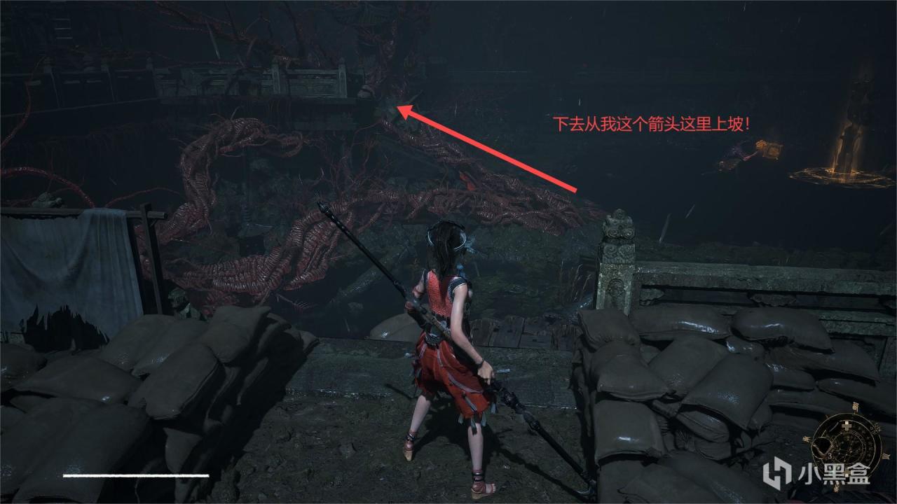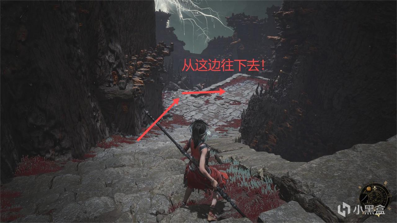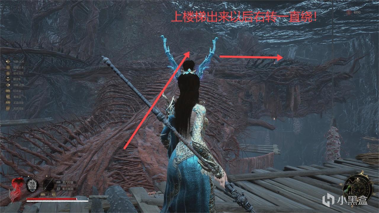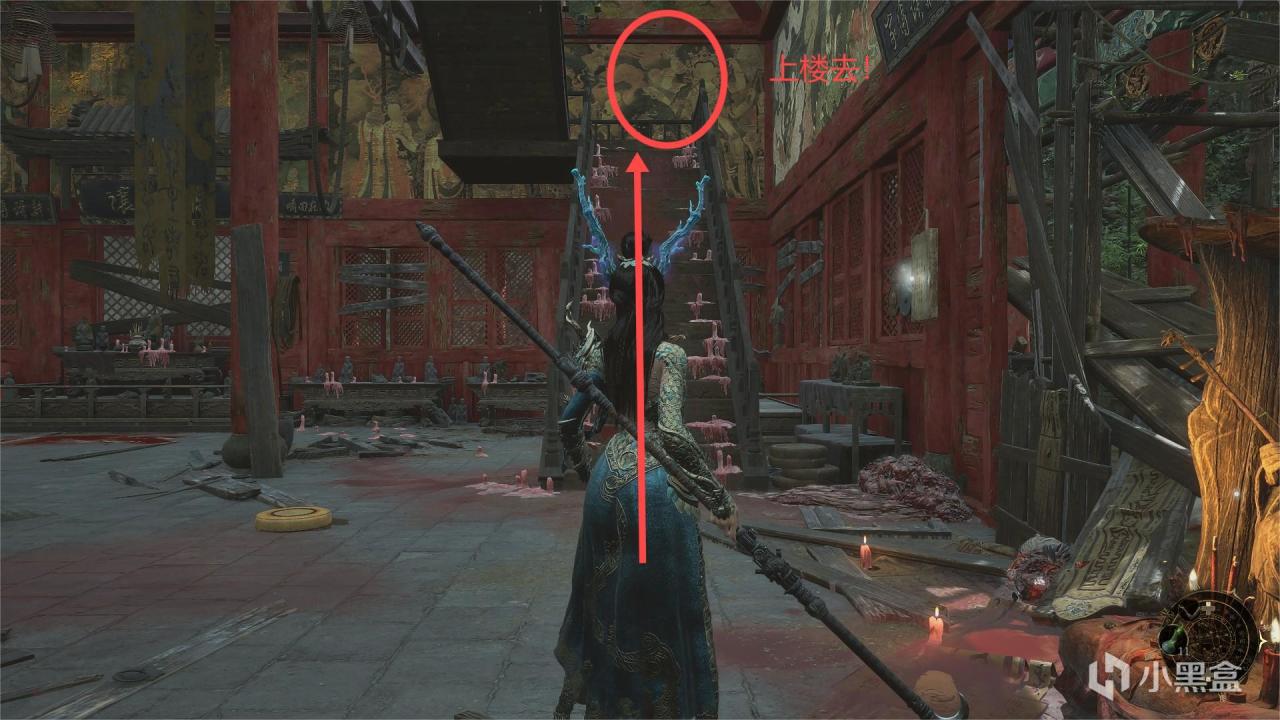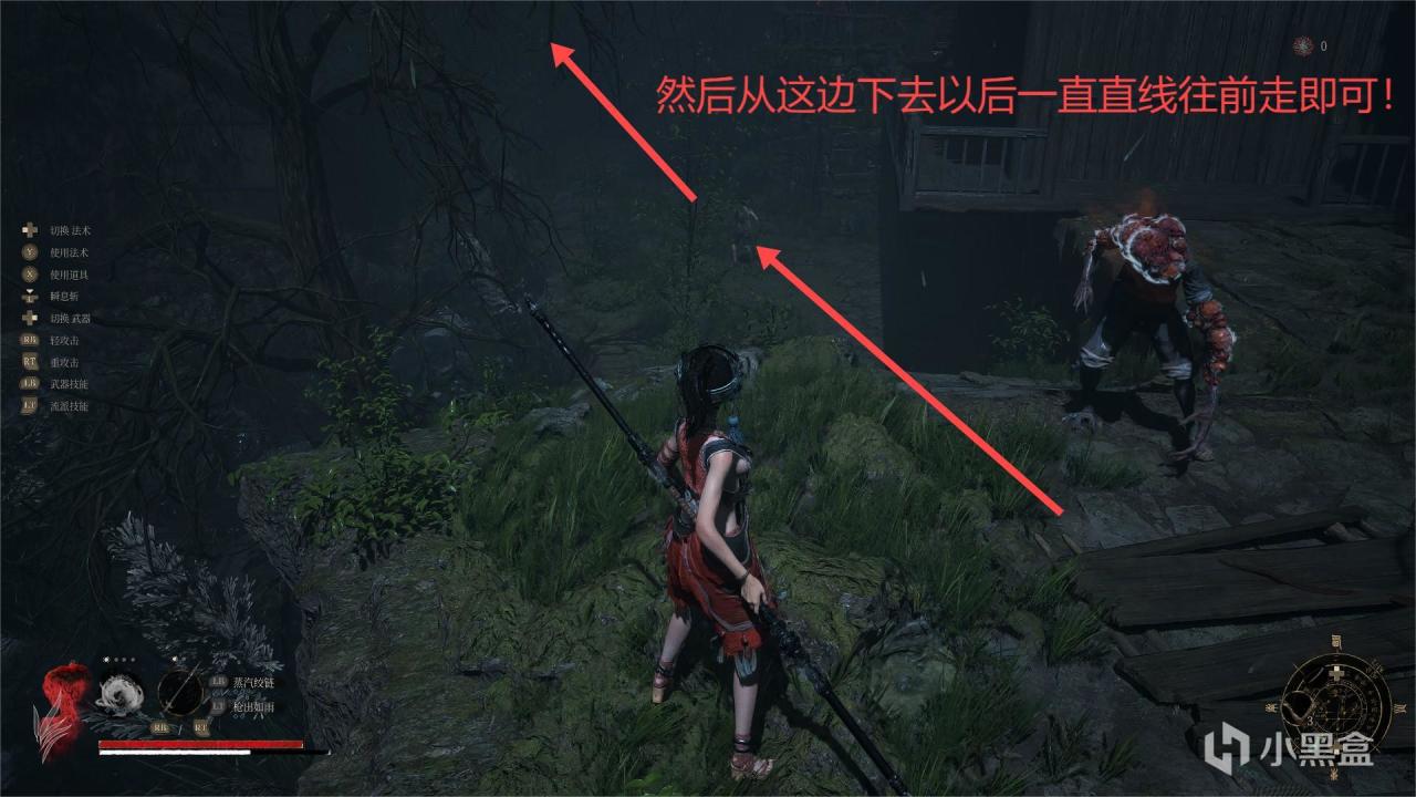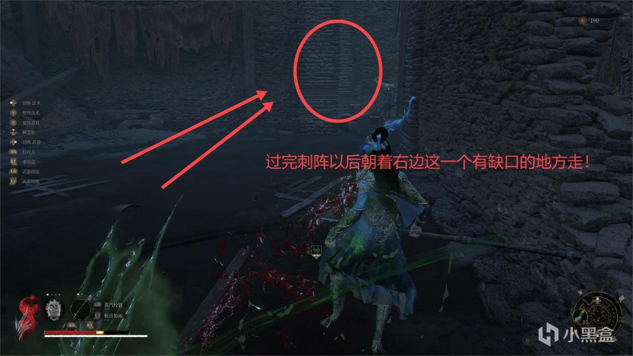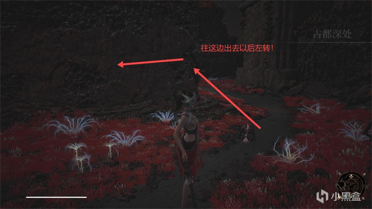 我們傳送到古都深處,然後開啓圖中的開關以後會開啓兩扇門,我們去周圍我圈圈標記的這個房間,進去以後右轉就是竹筍出現的地方!