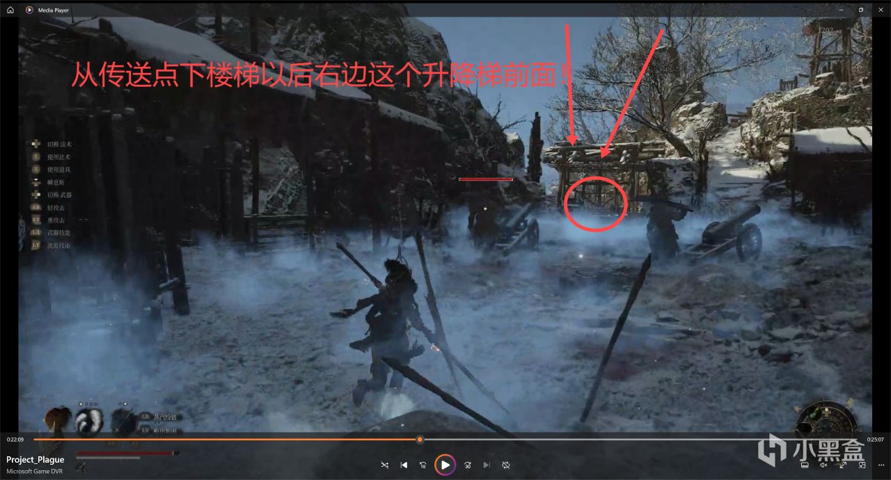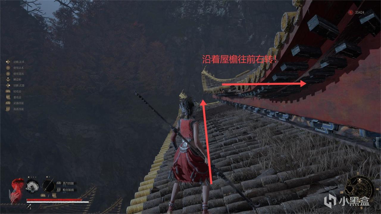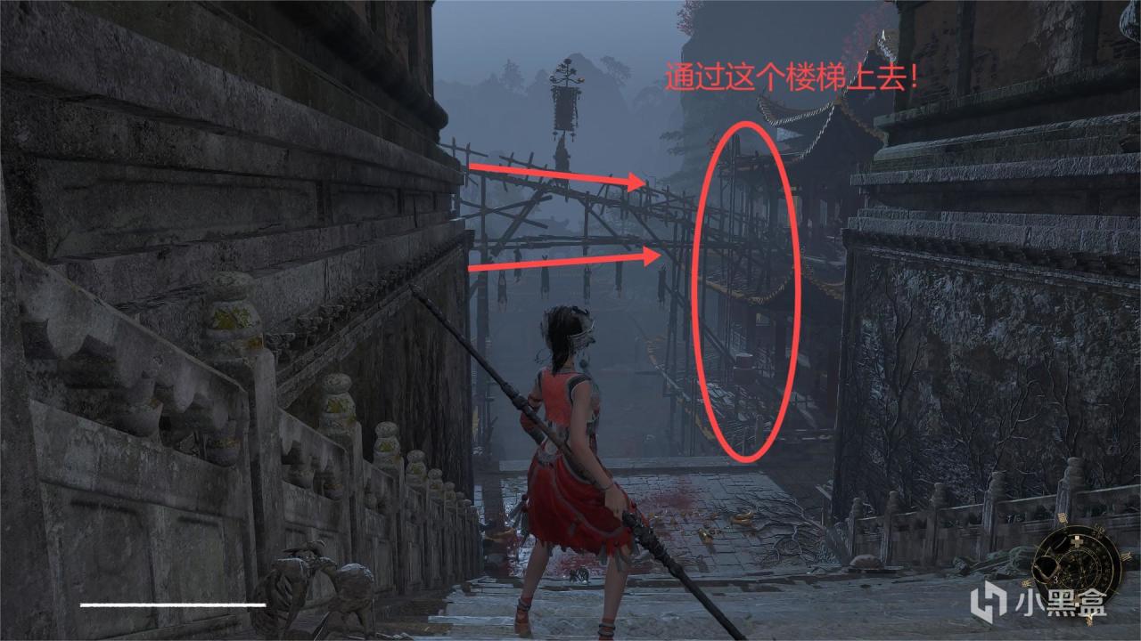 這個竹筍在傳送點靈觀殿出發,上右側樓梯通過頂樓屋檐來到一個廣場,在廣場右側,需要注意大炮!