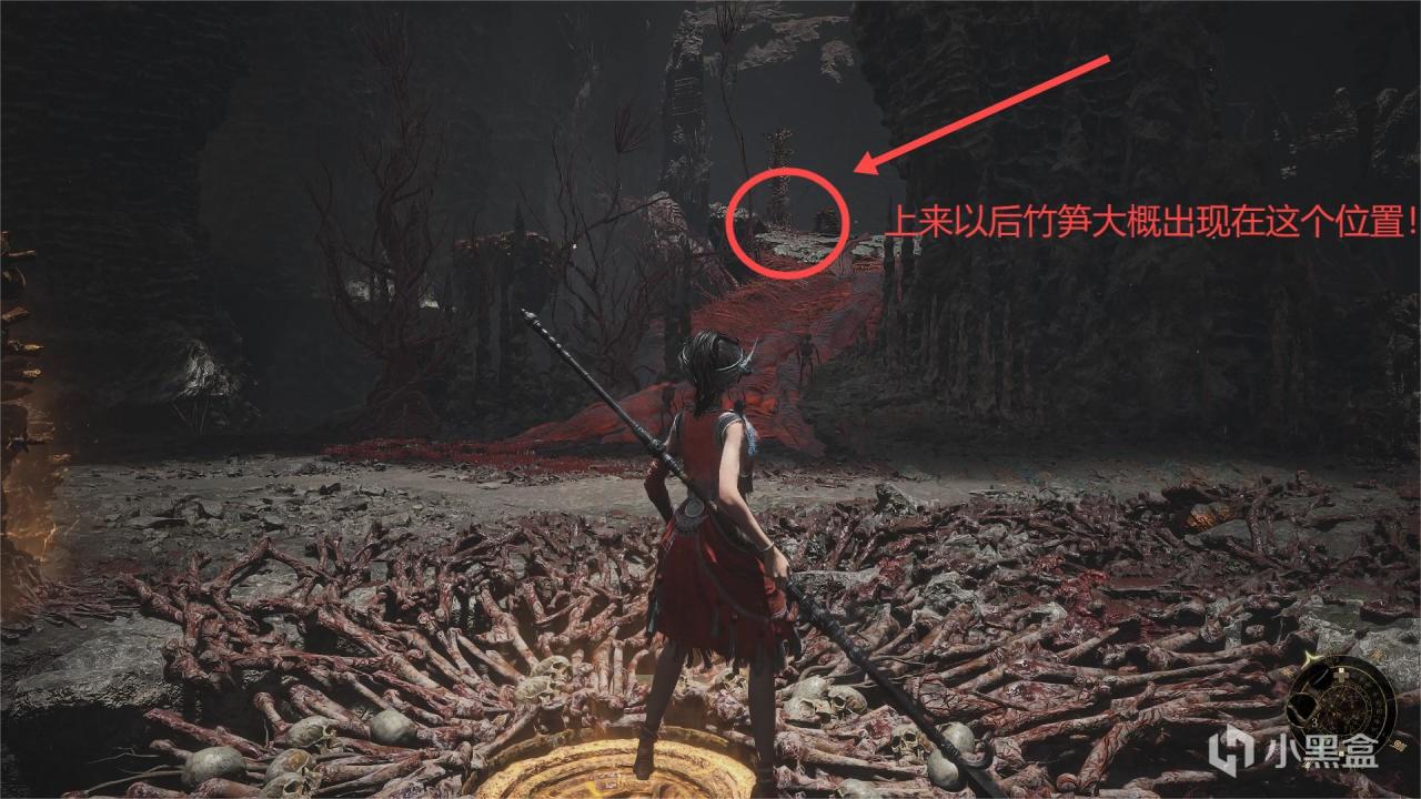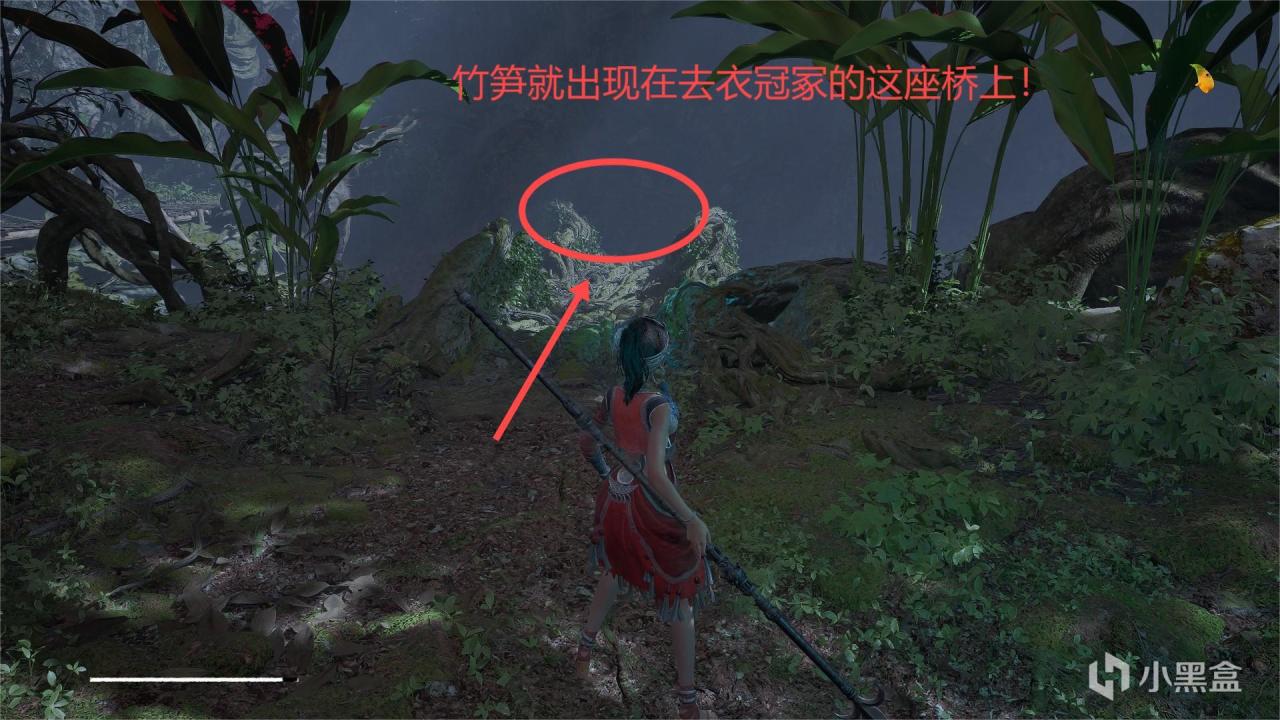 我們傳送到鳥人居所神龕,然後通過捷徑過橋,對面有兩個小兵,然後左前方有一座橋通往衣冠冢,橋上就會出現一個竹筍!