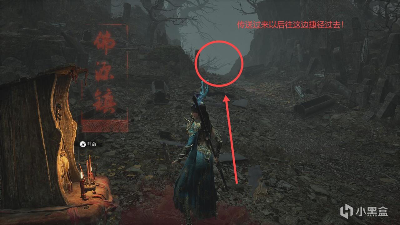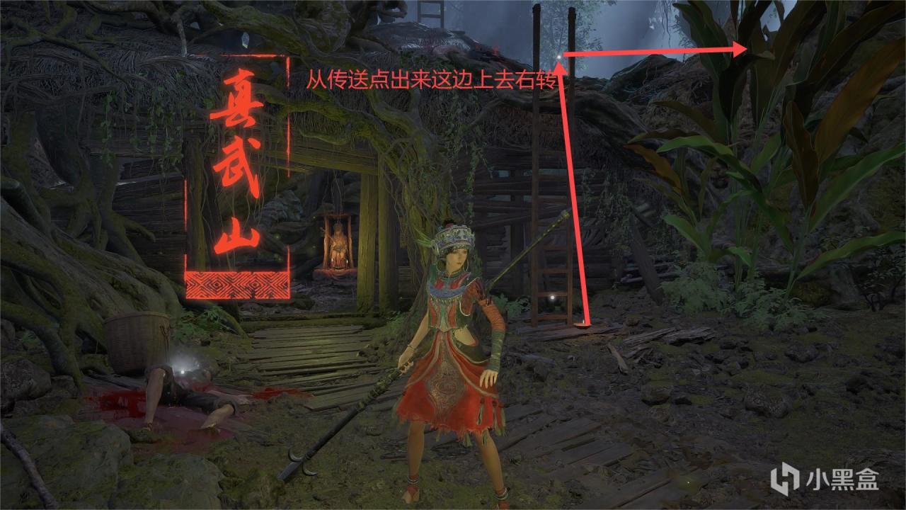 傳送到赤煉工坊,從神龕這邊下坡去左轉!