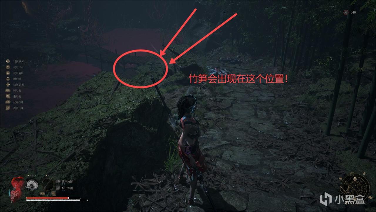 這個也比較簡單,捷徑是從大西軍營地出發,下樓梯右側開的,至於竹筍的位置,大家看圖!