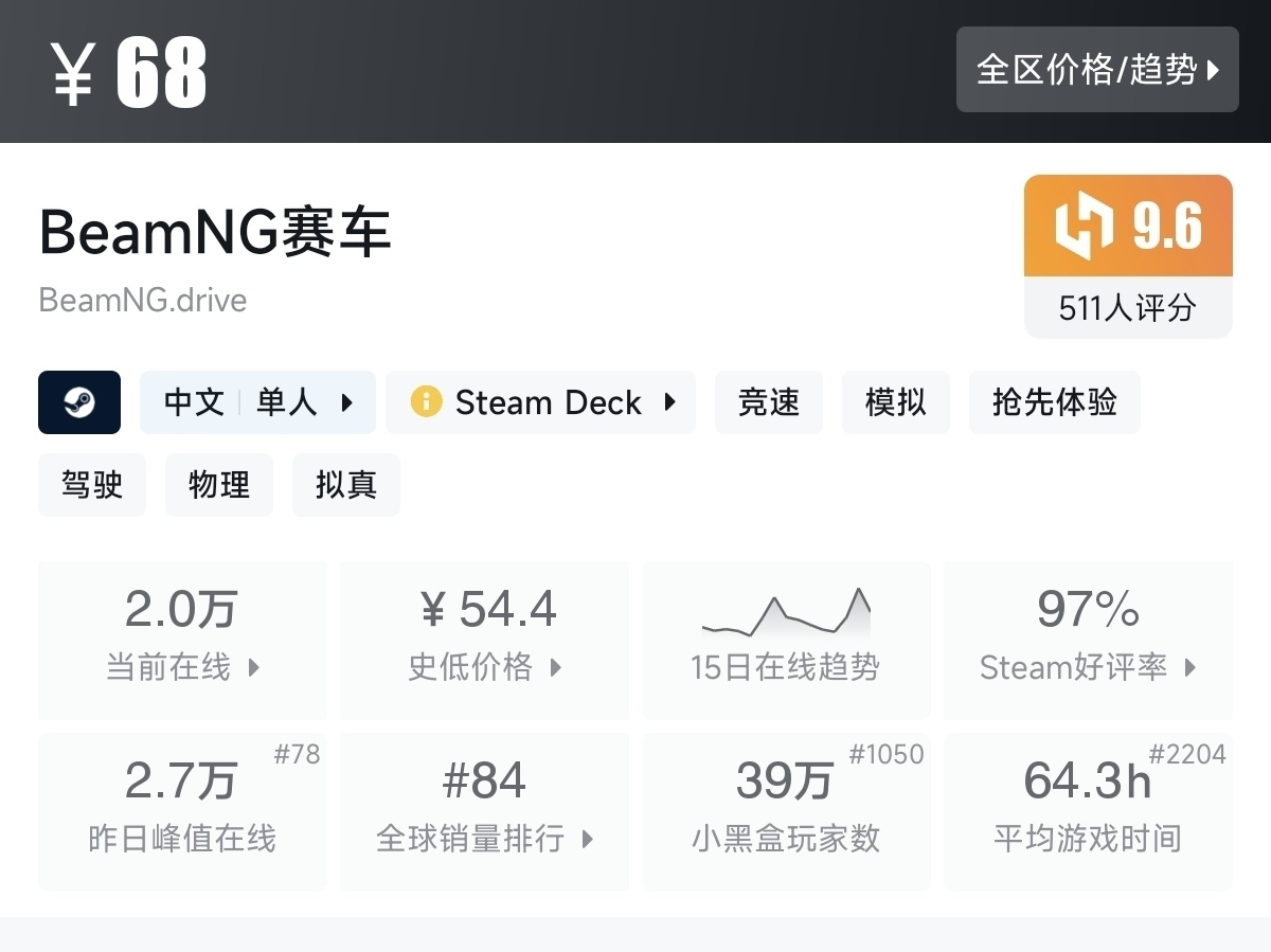 Steam竞速游戏节已于北京时间7月29日正式开启,牢雀在这里为大家整理一些竞速游戏推荐以及其他类型游戏的折扣信息汇总。