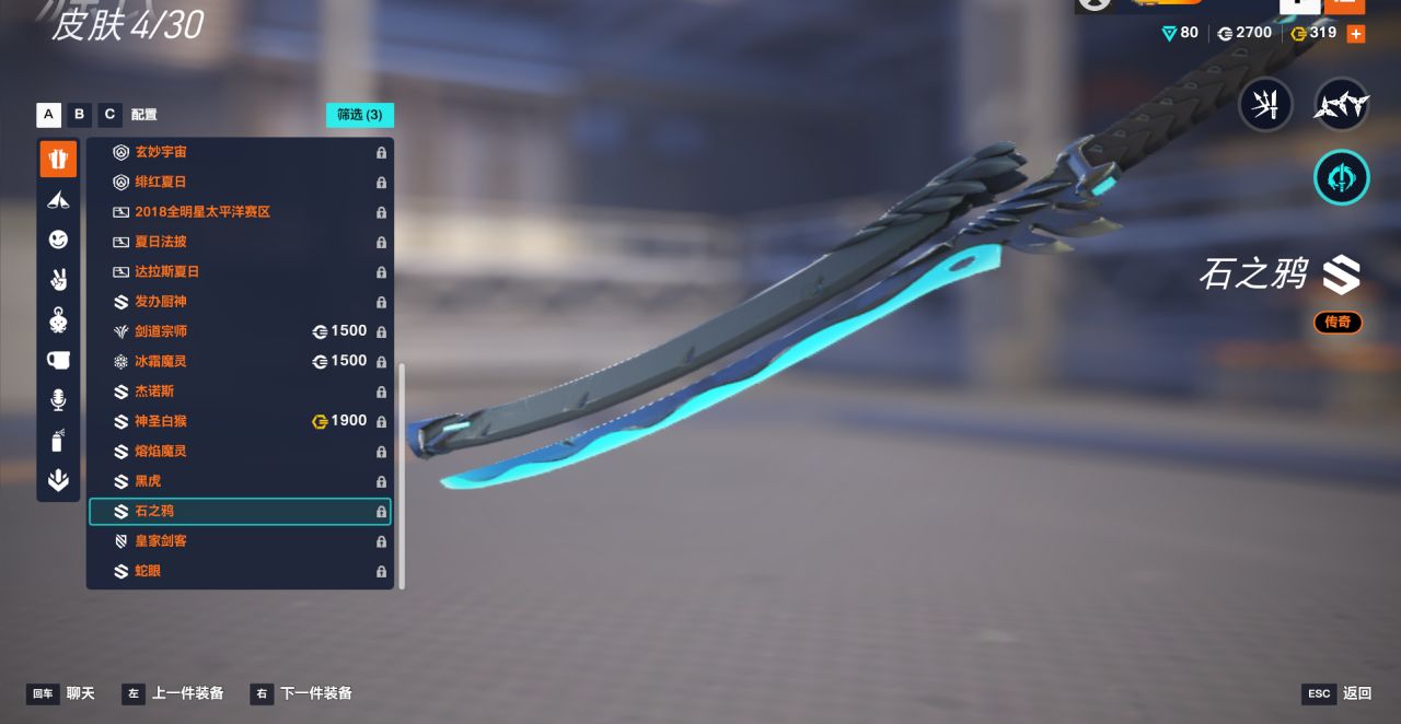 石之鴉,鬼怪傳說鴉天狗風格,整體不錯,有妖怪特色,武器樣式過關。對應同系列換色皮——鴉天狗,整體顏色偏紫色,直購1500白幣。