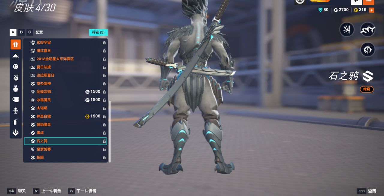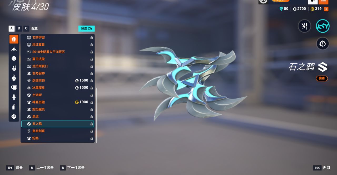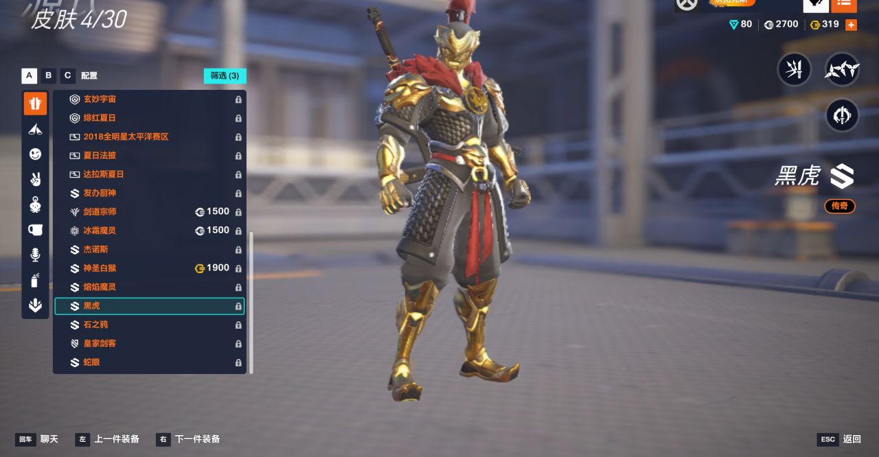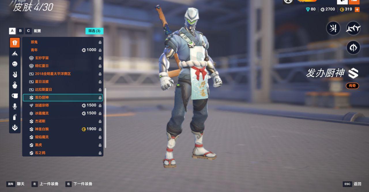 皮膚的話源氏因爲不可直購的比較·多,這期先介紹。一共6款,邪鬼,黑虎,發辦廚神,神聖白猴,熔焰魔靈,石之鴉。一般來說都是邪鬼和黑虎,就不安皮膚列表順序,先介紹這倆個。