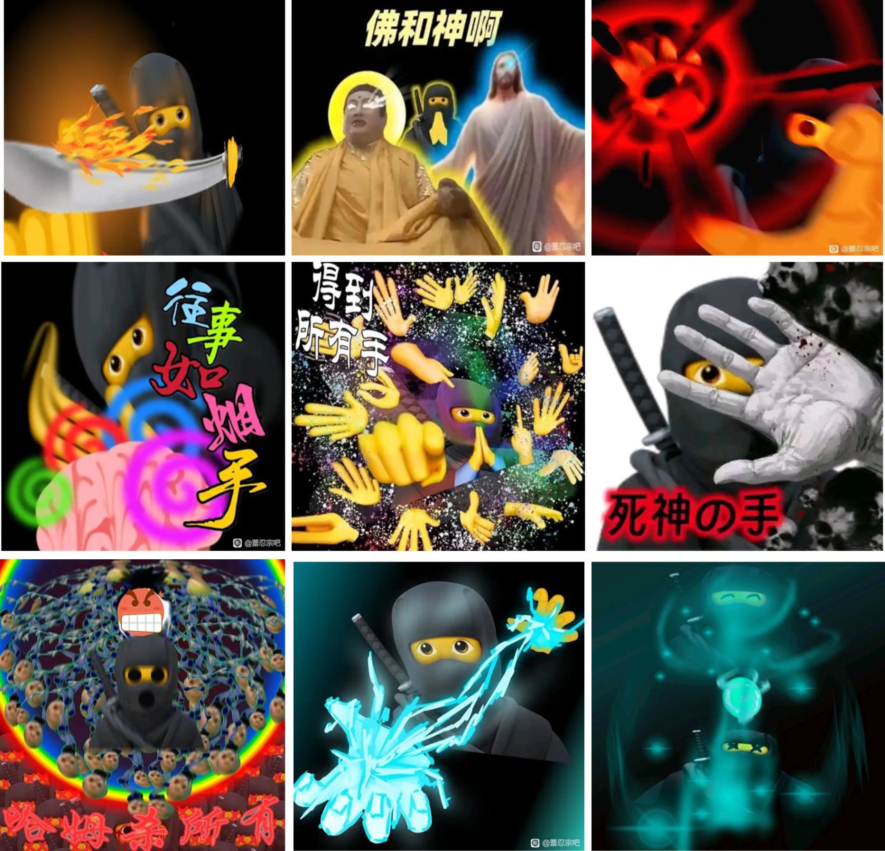 不知道你們上網衝浪的時候,有沒有刷到過類似的視頻或者梗圖,忍者emoji的小人像《火影忍者》裏那樣,一邊手裏搓忍術招式,一邊大喊招式臺詞。