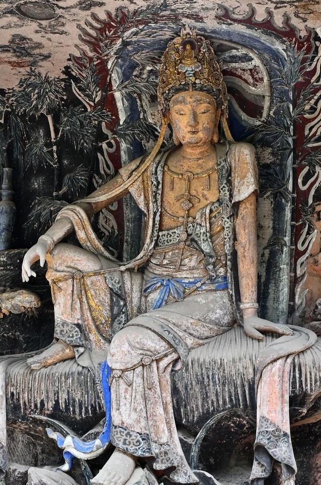 該景區現存窟龕103個,造像1,933軀,唐、五代、宋時期作品居多,以釋迦、淨瓶觀音、蓮花手觀音三尊6米多高的大像最爲壯觀。