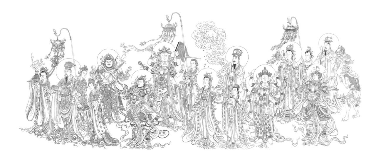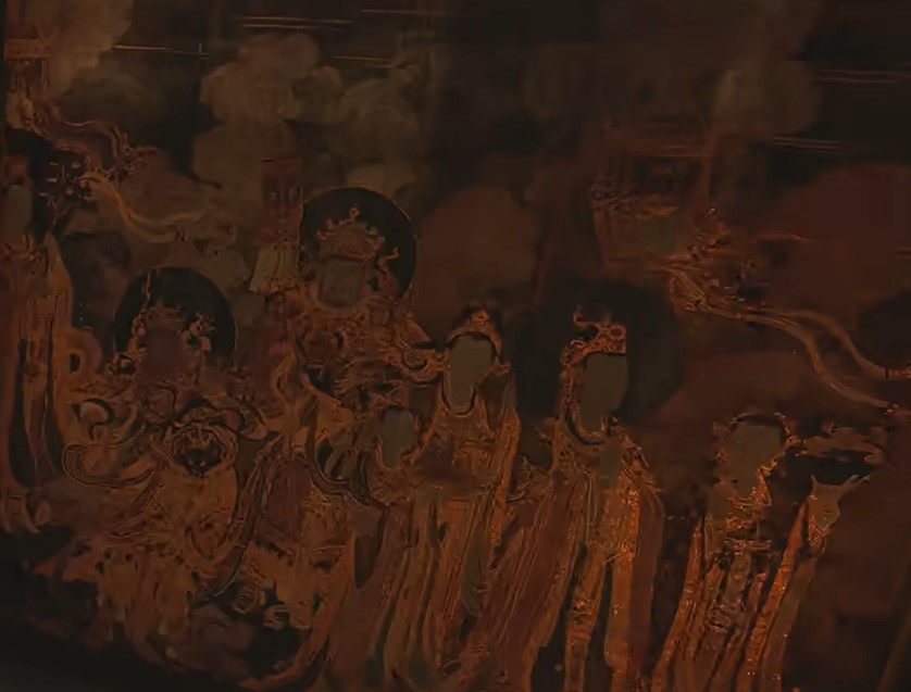 遊戲中,普元寺內,【瑜夏】和【陶青】背後的壁畫都是【梵天禮佛護法圖】。