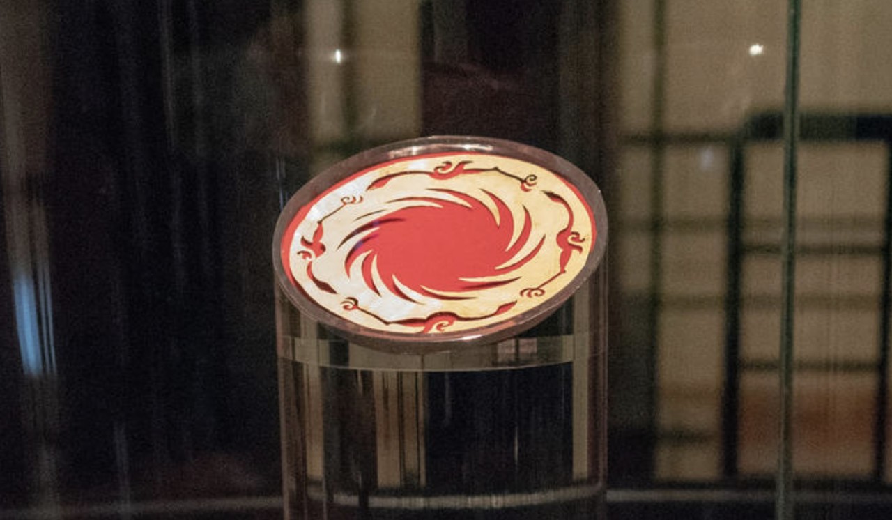 內層圖案中心爲一沒有邊欄的圓圈,周圍等距分佈有十二條順時針旋轉的齒狀芒,芒呈細長獠牙狀,外端尖,圖案好似空中旋轉不停的太陽。