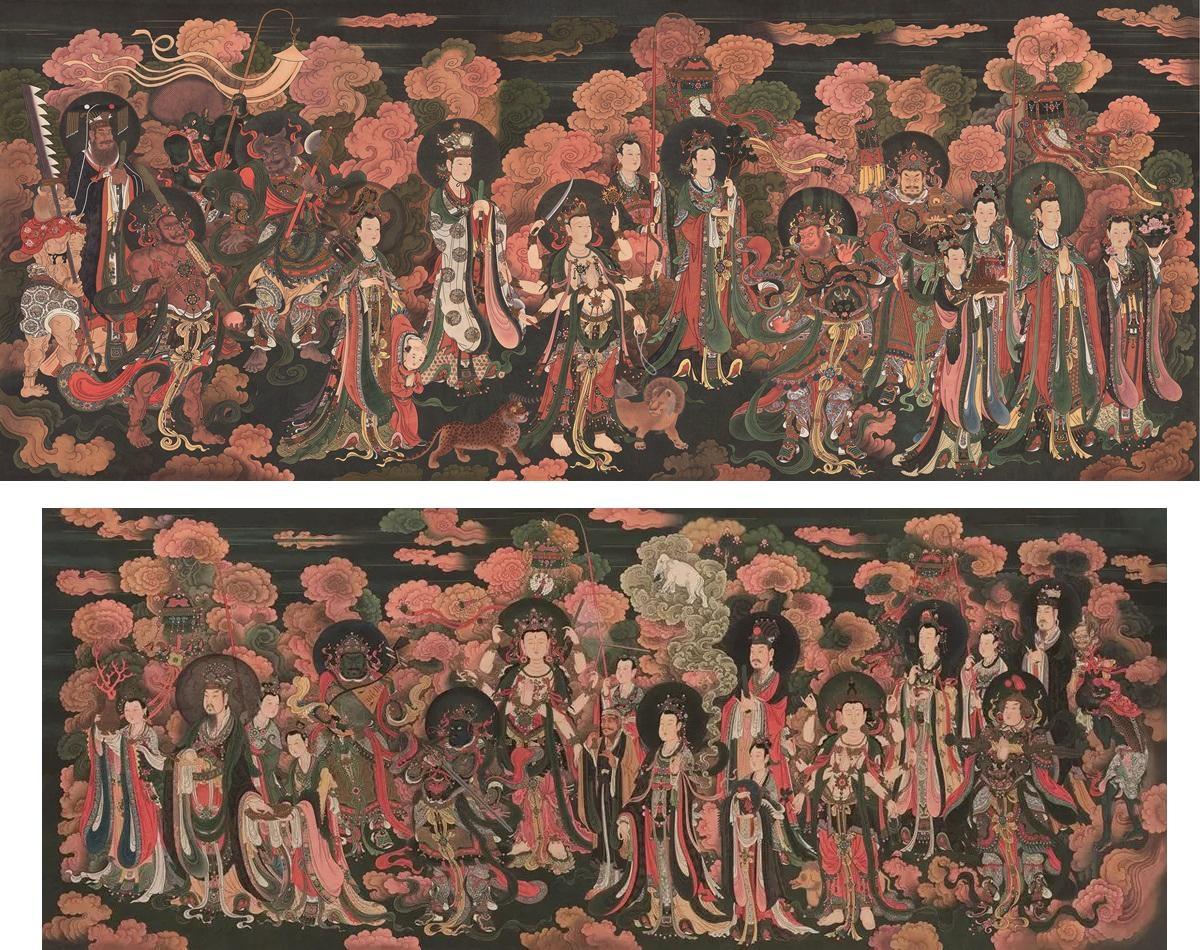 上:帝釋禮佛護法圖 下:梵天禮佛護法圖