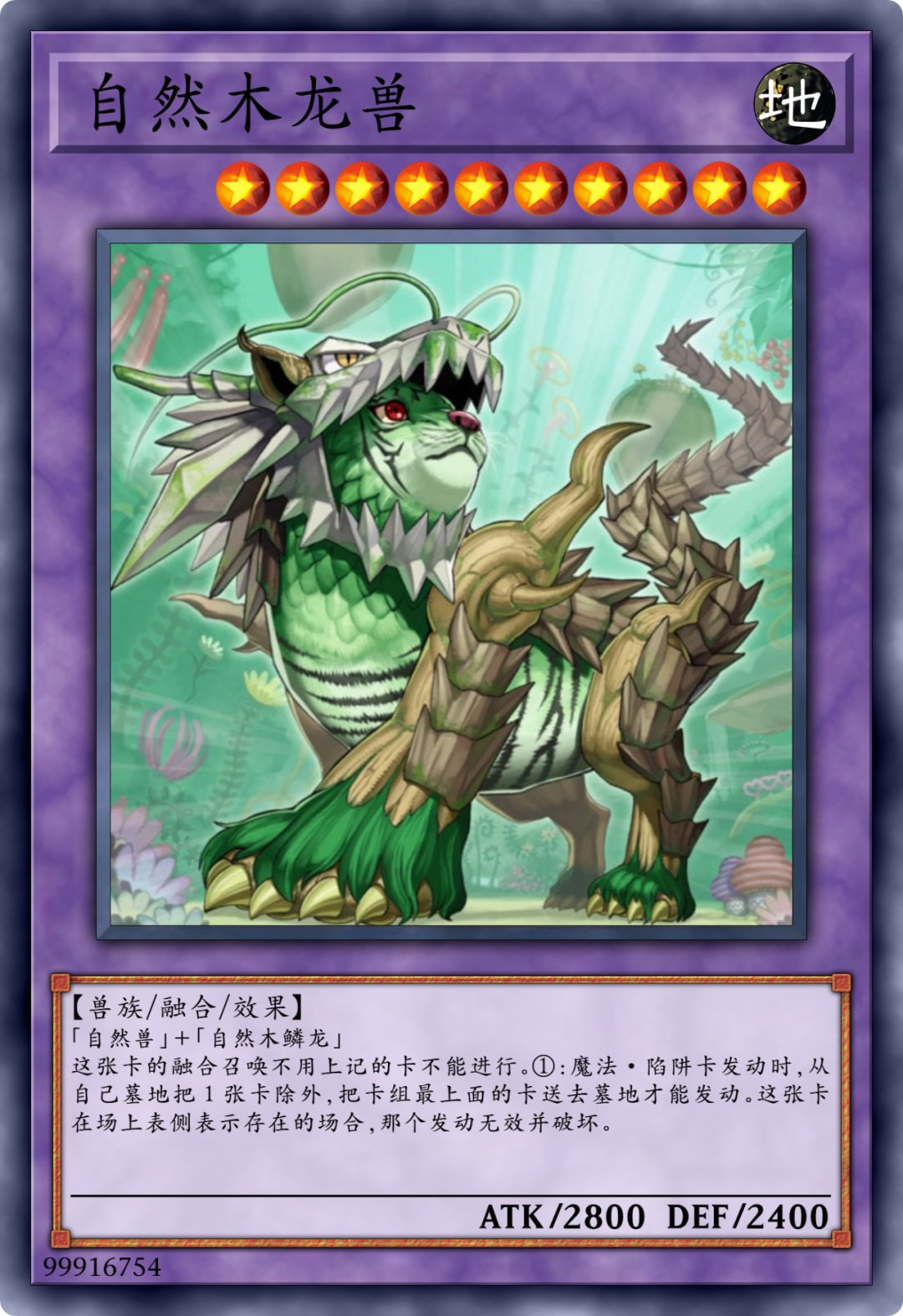 最經典的就是科學怪人拉額外卡組的自然木龍獸。自然木龍獸可以通過除外墓地和卡組上面的1張卡,來使魔法陷阱卡的效果發動無效並破壞,並且沒有1回合1次的限制。這套玩法等於就是拿5000血量,換對方的魔陷封鎖。