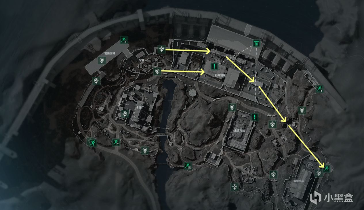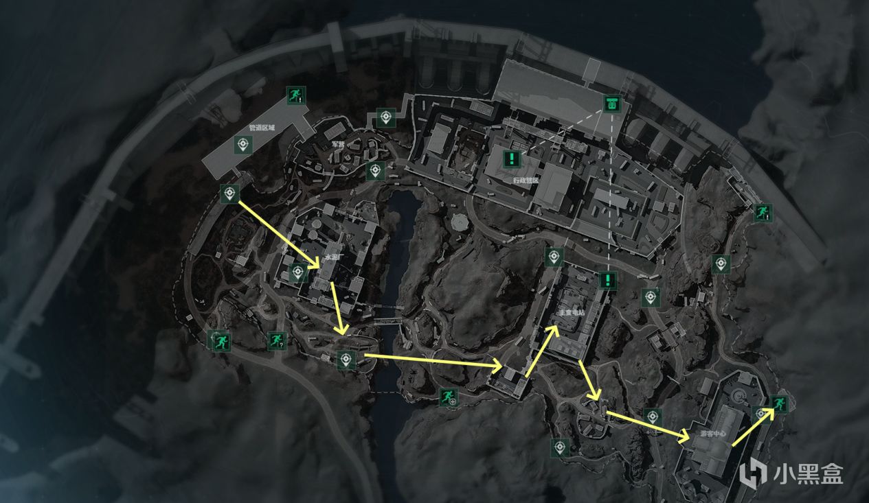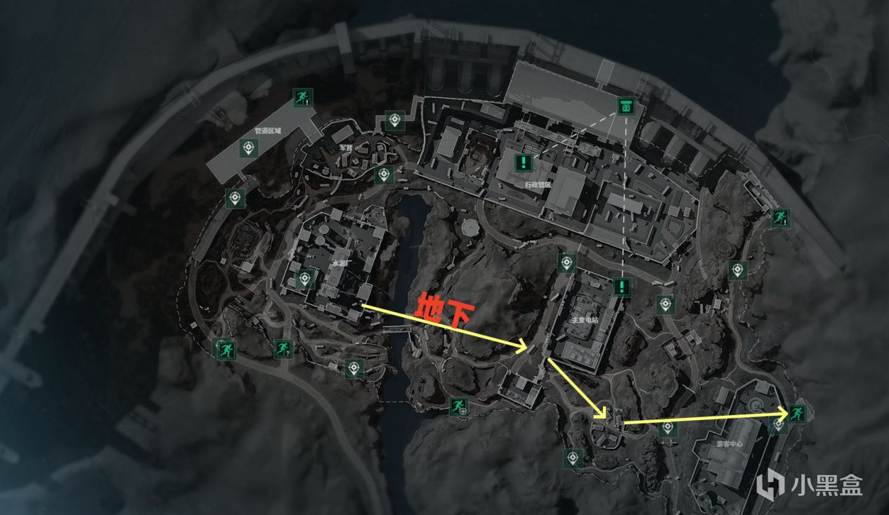 遊客中心上方出生點。同理如果有大保險,直接喫檢查站,大變電、小變電,沿地下到水泥廠喫剩飯然後撤離