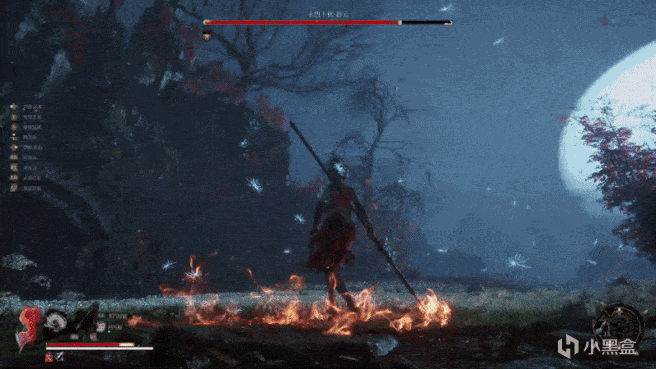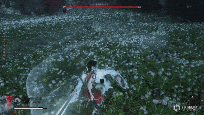但是在半血後二階段的時候,我們不能再利用這種思路,因爲他轉圈往下劈以後會有兩個人影,我們要躲掉以後再用組合技打背刺,三次下砸出冰以後也會多一個大範圍空氣斬,這個大家也要躲開以後再給組合技