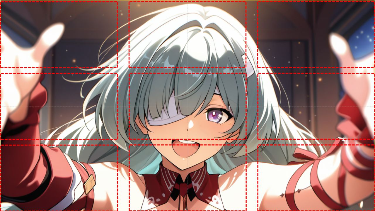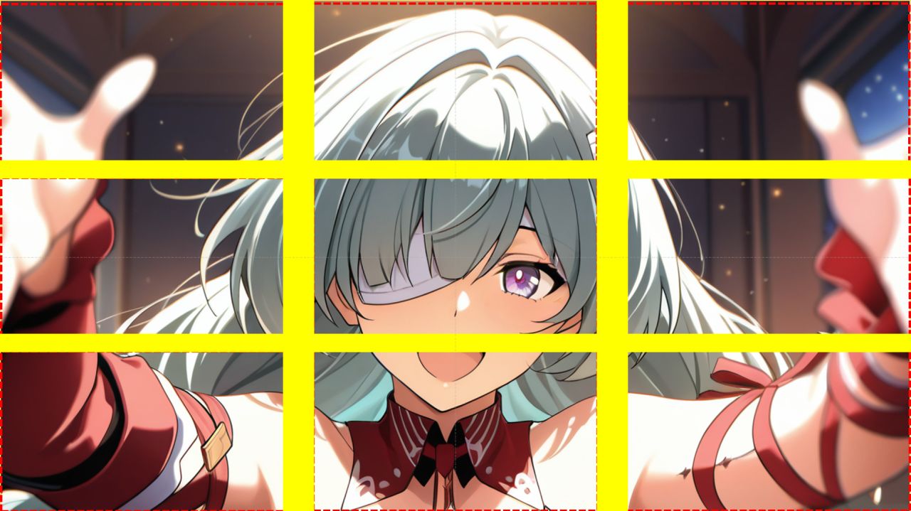 再說剛纔爲什麼要把重繪尺寸的長寬設置成1408*848。因爲我需要預留這9張圖中每兩張圖之間64像素的間隙!就是下圖中黃色的區域: