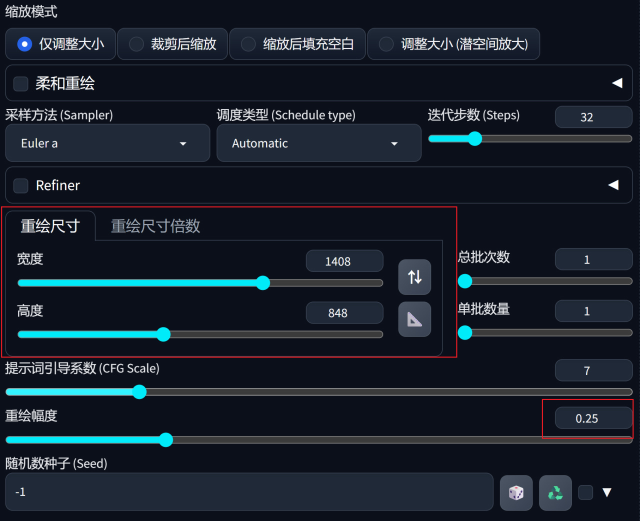 把重繪幅度調低,我設置成0.25。因爲我只需要放大就行了,不需要它幹別的事!