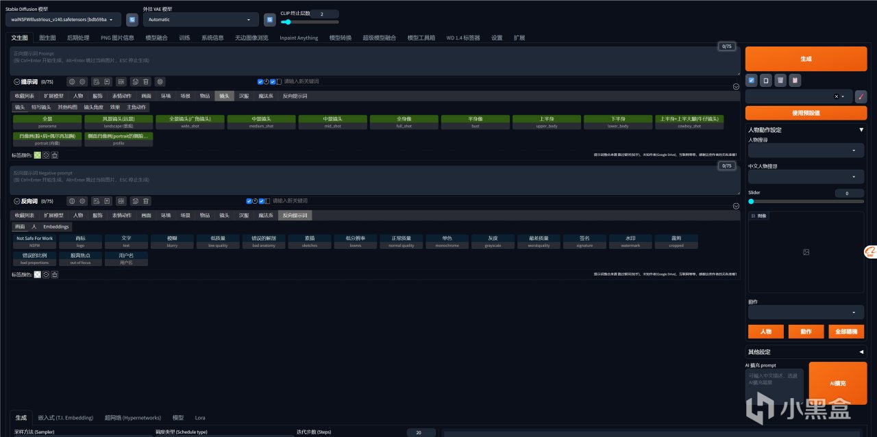 其他提示詞中,那些masterpiece,best quality這種記得一定要放,不然容易生成一個比較糊的畫面。那些比較通用的關鍵詞,後來也就是抄來抄去這幾種。