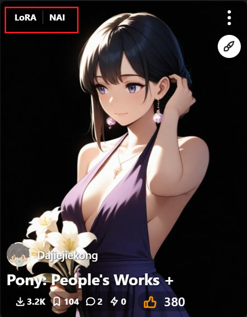 模組預覽圖片左上角會寫這是什麼模型,具體是Checkpoint還是LoRA一目瞭然。