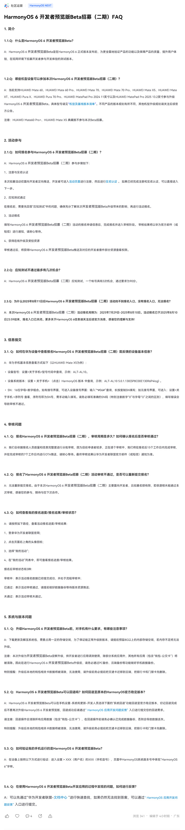 快科技7月30日消息,据华为开发者官网显示,HarmonyOS 6开发者预览版Beta招募(二期)已经正式开启。