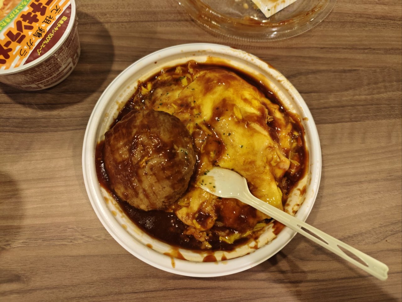 在便利店买了蛋包饭、汉堡肉和大名鼎鼎的“360卫士”,回酒店发现居然免费送了杯面,加餐!天无绝人之路!