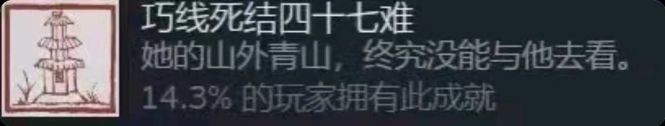 此外,四妹的成就为【巧线死结】:她的山外青山,终究没能与他去看。