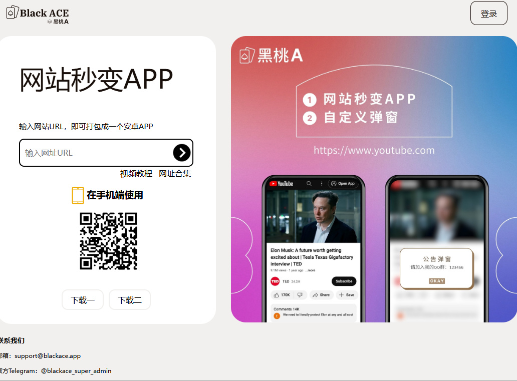 是一个可以让任何网页变成手机APP的升级工具,你只要粘贴一个网址进去,它就能一键帮你打包成可以安装在手机的APP图标,名字还能随便改,甚至还能设置APP激活码,快去把你的私藏网站打包成APP吧