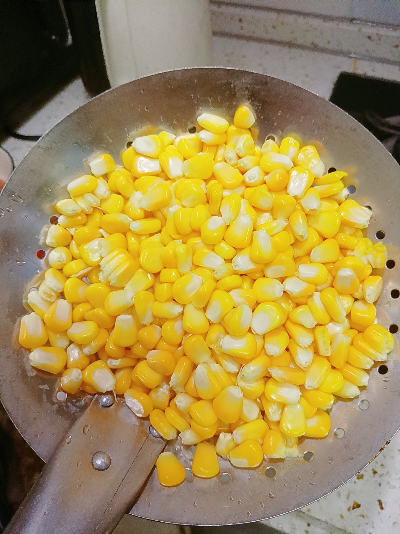 玉米对半切,再一排掰下来。香肠切片。香菇泡好(香菇洗干净,泡水,水可以放到米)葱切花。