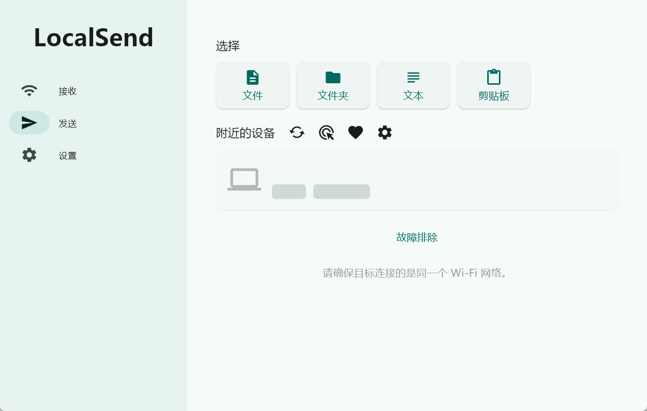 (3)同一个Wi-Fi网络下可发送文件,文件夹,文本,剪贴板,