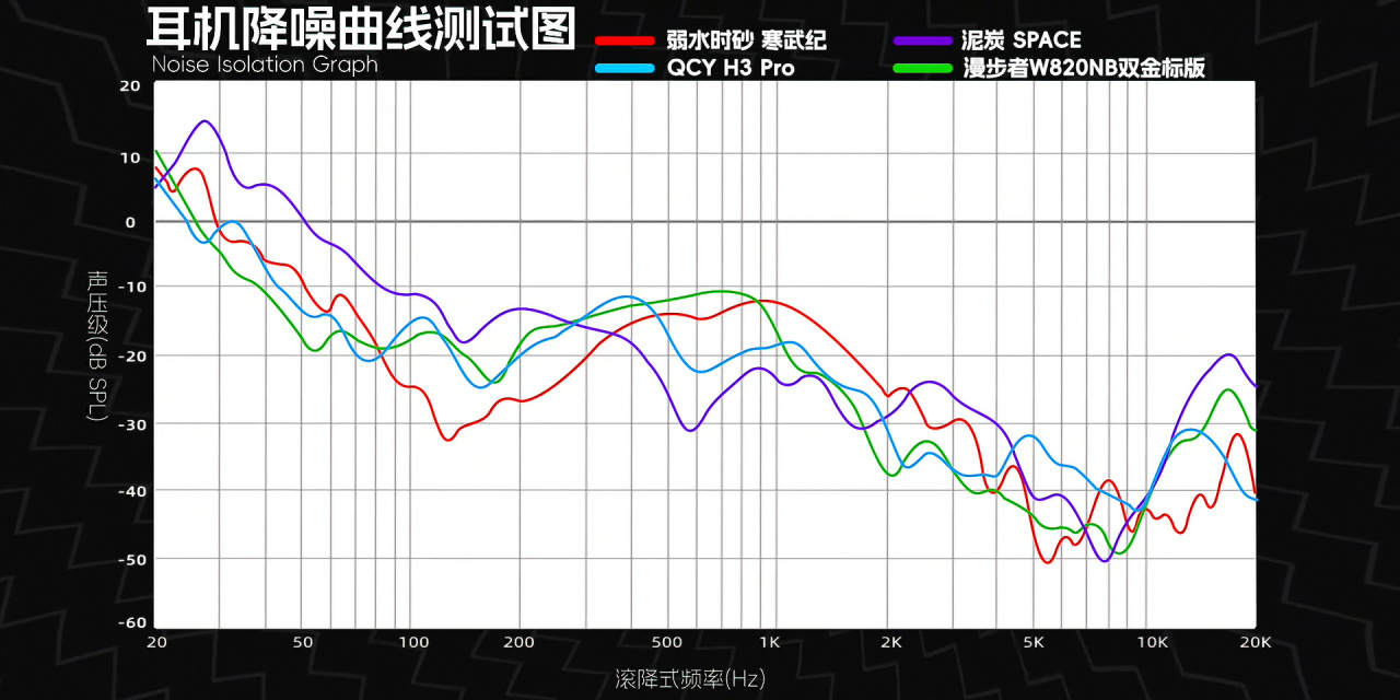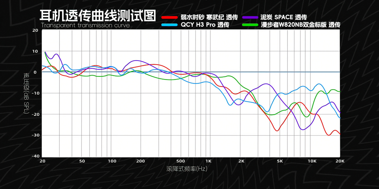 SPACE虽然低频降噪逊于前面二者,不过峰值频段更接近于中频,且中高频没有出现明显的增噪,多数场景下的降噪体验可能还强于前两个。