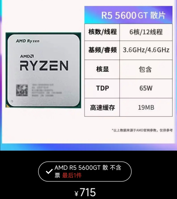 配置核心、最貴的硬件就是CPU——AMD的R5 5600GT: