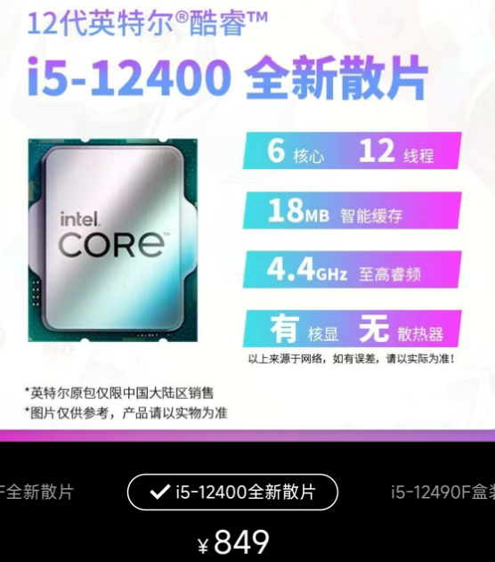 5600GT CPU的綜合性能和對手的i5 12400差不多,且性價比更高!像今日CPU價格,12400價格是849元: