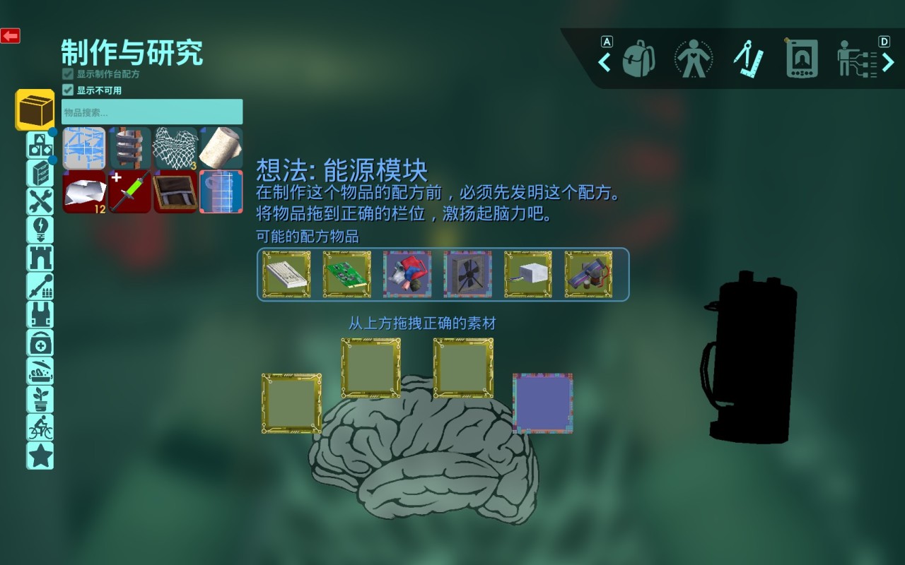 有一些物品的配方并不是直接给定的,需要玩家在有限的材料里自己摸索配方,这个设定非常有意思,这个创意在《犹格索托斯的庭院》里亦有记载,只不过本作没有试错成本,对物资匮乏的新手玩家来说非常友好。