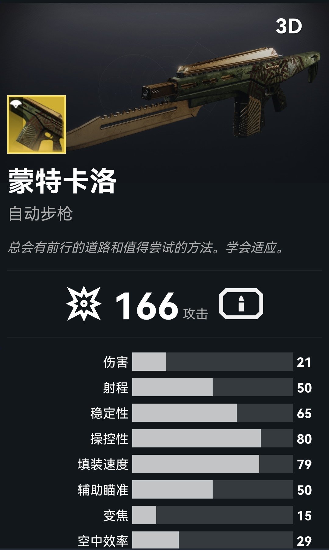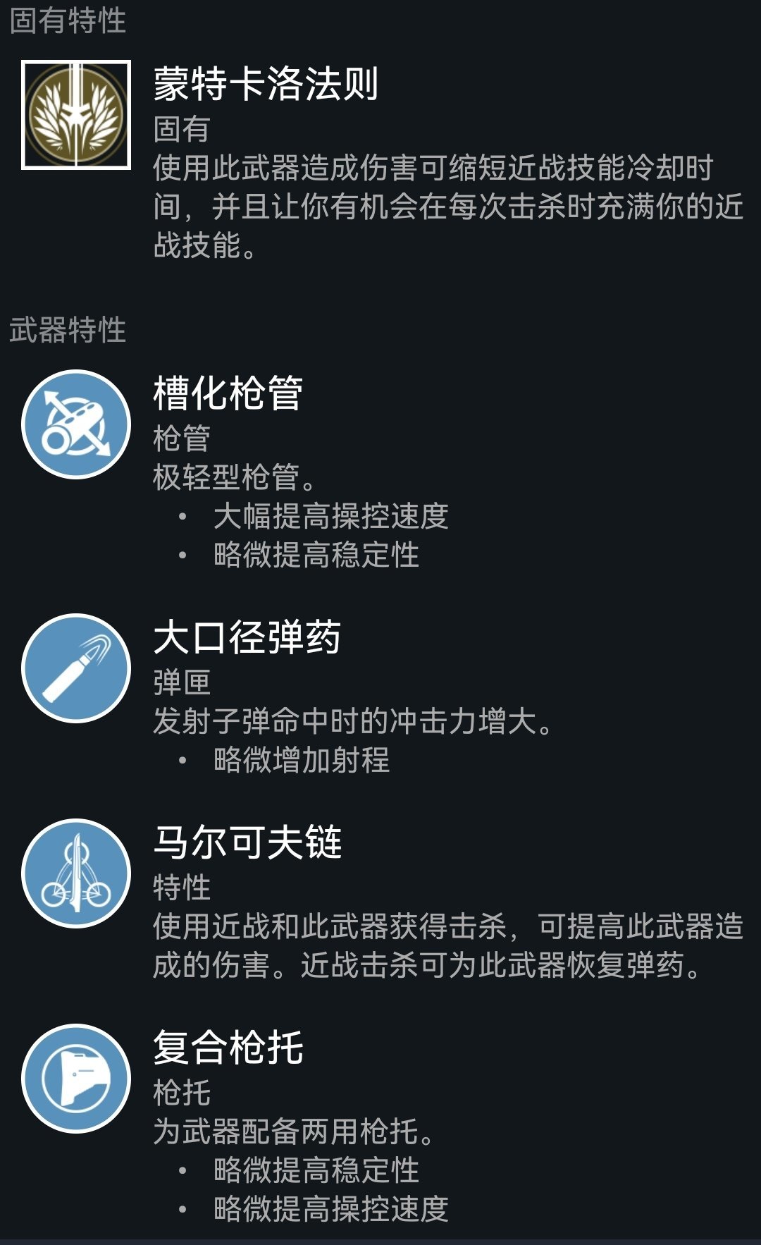 近戰屬性疊不高的也沒關係,推薦這把蒙特卡洛,造成傷害能恢復近戰能量,通常2/3梭子就能回滿,並且在完成催化後,還能切換刺刀形態,造成高額傷害,傷害跟重擊有加成,這把武器都可以說是泰坦專武了。