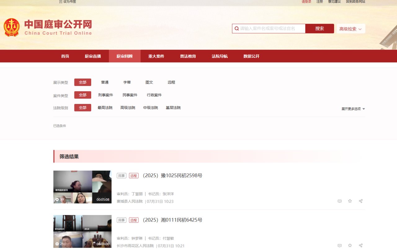 全國各個法院可以在線看庭審直播的網站,他目前累計接近1000億的方量,在首頁點擊庭審回顧,裏面收錄了大量曾經線上開過庭的直播內容,在上面還可以選擇不同的案件類型或者不同的地區,呃,如果你覺得不夠精彩的話,就可以進入到這個重大案件板塊裏面,隨便一個就是幾百萬的觀看,這不比什麼電影綜藝都好看