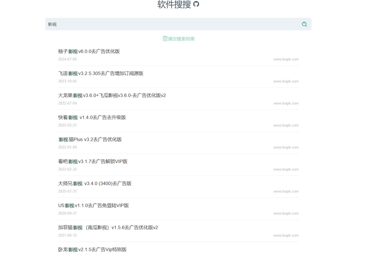 這是一個可以讓你下載到任意綠色軟件資源的搜索網站,搜索小說,你就能夠獲得各種免費優質的小說APP,輸入漫畫,你就能夠獲得大量免費好用的漫畫APP,安卓和Windows軟件都能夠搜索,點擊即可跳轉到對應的網站進行下載,資源超級多