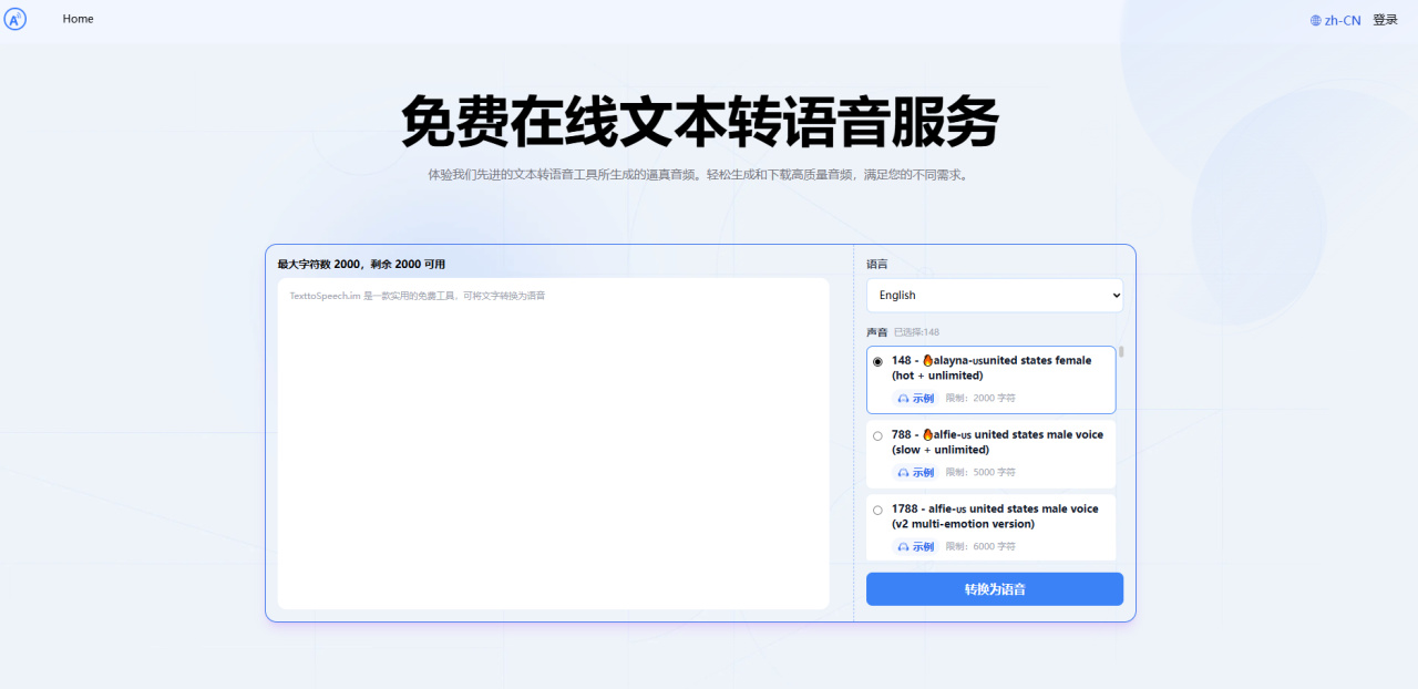 這是一個可以將文本轉換成語音的在線工具,網站完全免費,不需要註冊登錄即可使用它這是中英日韓在內的幾十種語言的轉換,每種語言都有視力音頻可以聽