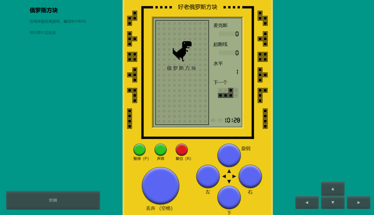 這是一個可以在線玩俄羅斯方塊的網站,頁面模擬掌機的界面,上面是屏幕,下面是按鈕,如果你用電腦玩,可以用鍵盤來控制按鈕,如果用手機玩雙手就可以操作,感覺跟掌機的體驗是一樣的,滿滿的童年回憶