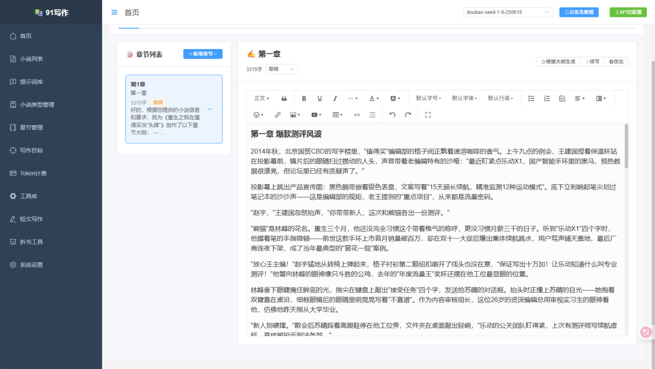 經過一小會兒的等待,咱們的第一章正文也是出來了,個人感覺還是挺不錯的,和市面上的流水線小說只能說是一毛一樣。