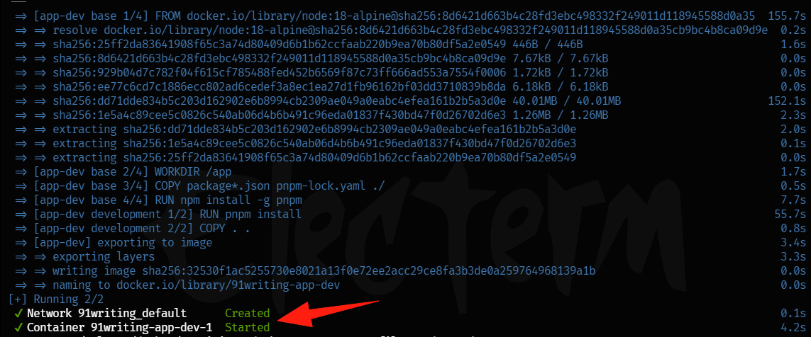 確認已經在項目根目錄之後輸入docker compose --profile dev up -d運行開發環境,這時候能看到一串一串的代碼在跑,靜靜等待,大概5分鐘左右,最後看到這樣的內容就行。