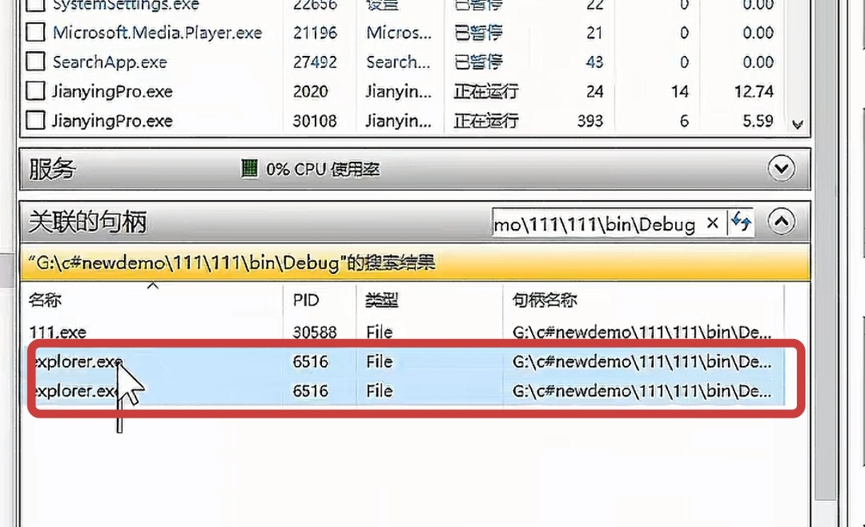 找到後,將除了這兩個以外的其他文件全部結束進程