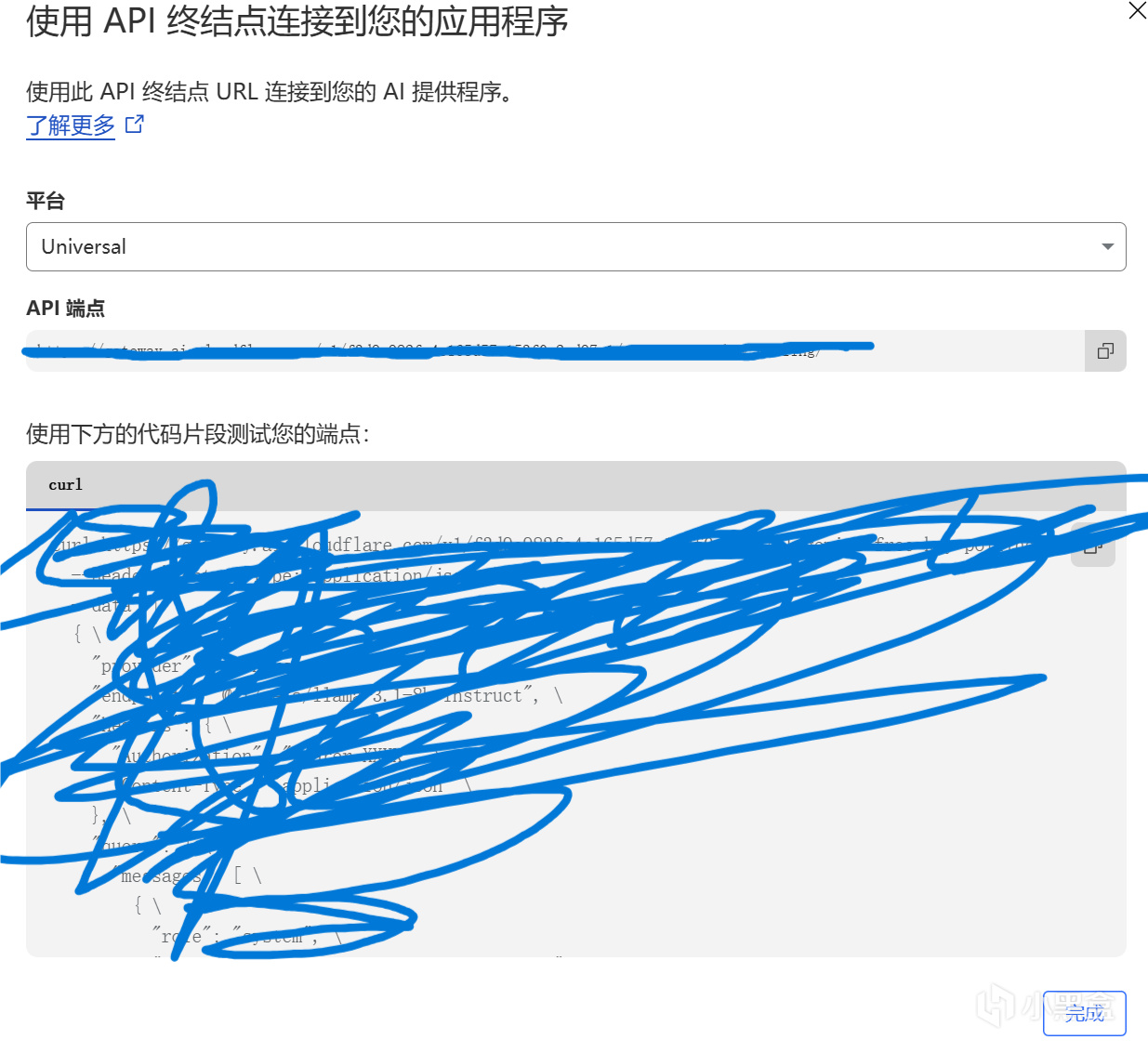 平台选着Universal,复制好给你的API端点后,点击完成即可