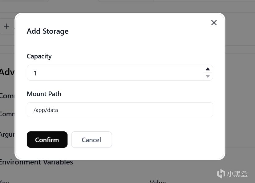 输入 /app/data ,然后点击Confirm
