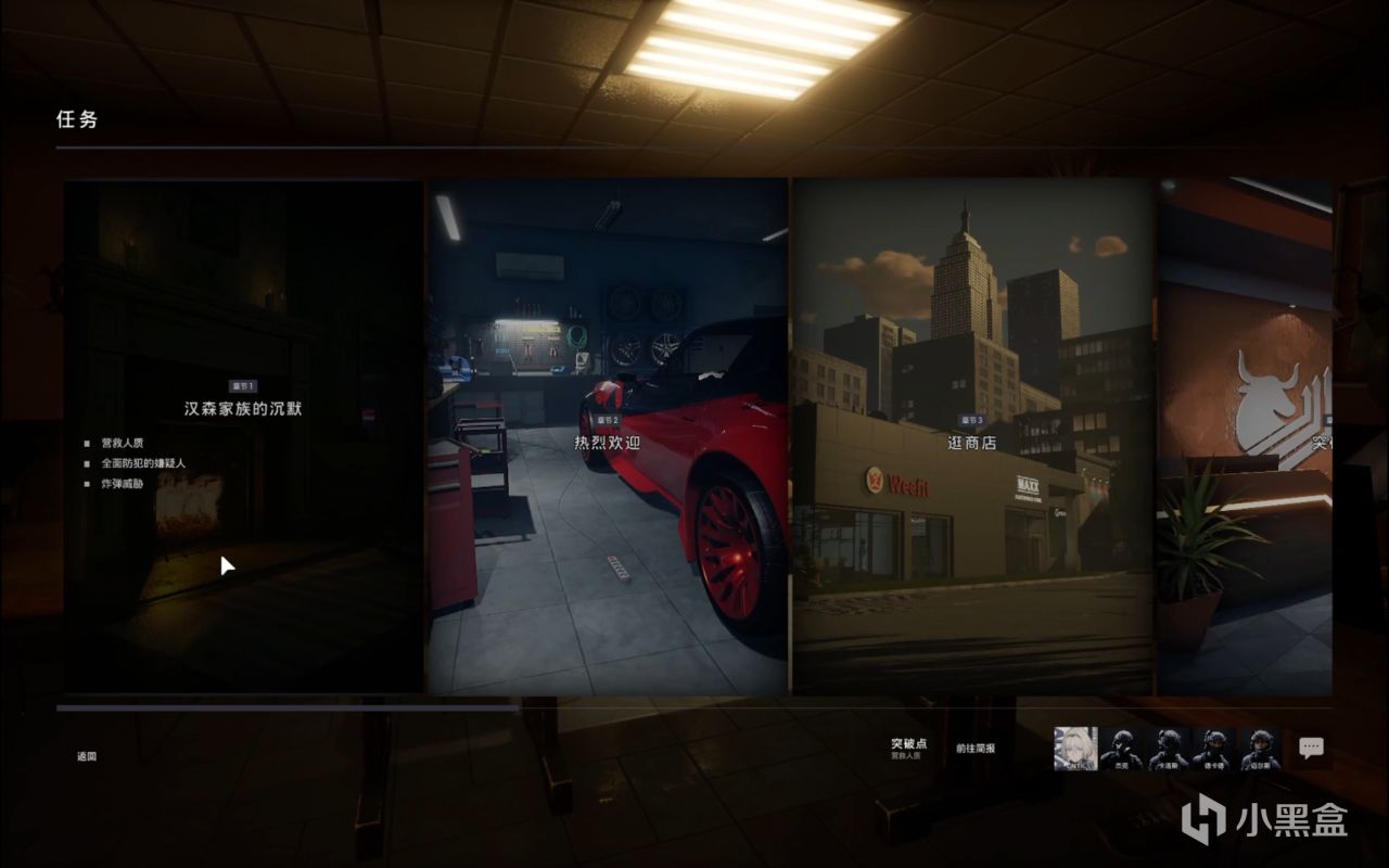 每个任务都有风格相同的平面图,可选择进入的入口。