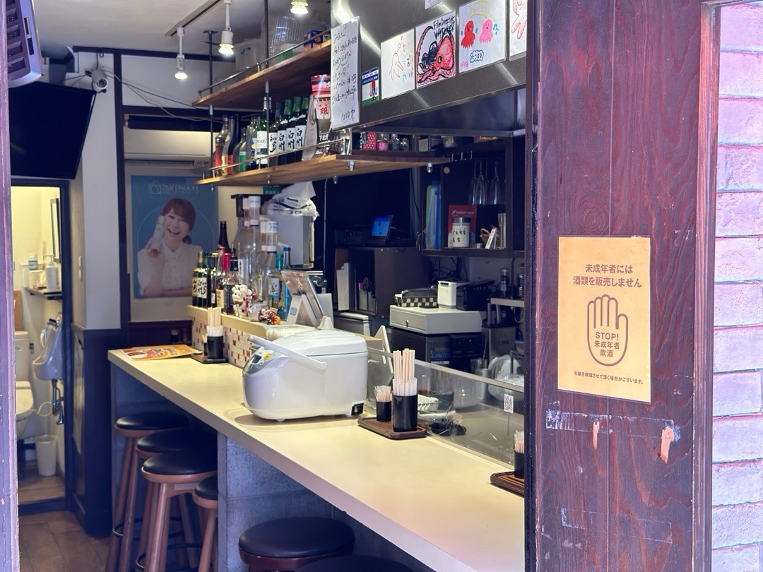 店內佈局是縱向佈局,與遊戲裏打工場景的橫向佈局不同,但是裝修設施基本一致,大家坐在吧檯邊喫飯,服務員在裏面給你遞喫的