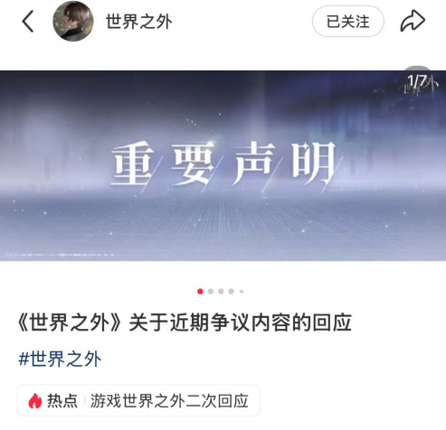 近期,《世界之外》三篇大字報似的發文引發玩家熱議。