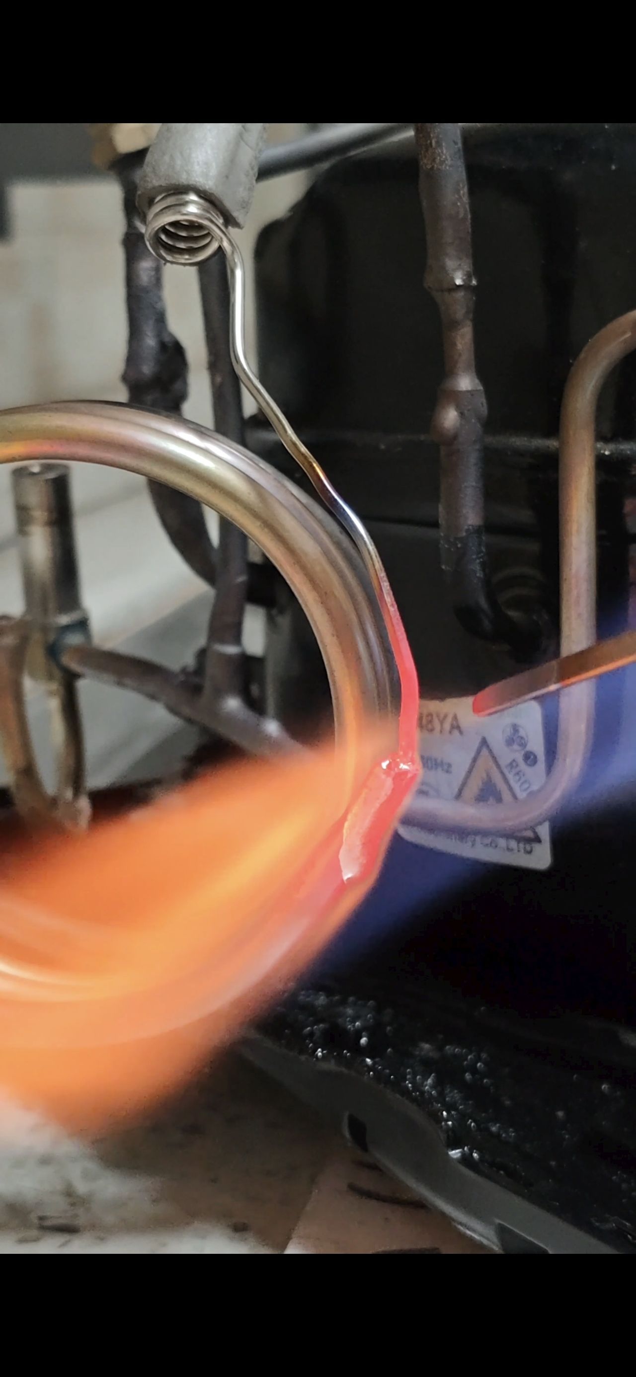 准备焊加氟口,加氟口可以焊在压缩机的任意一个进气口