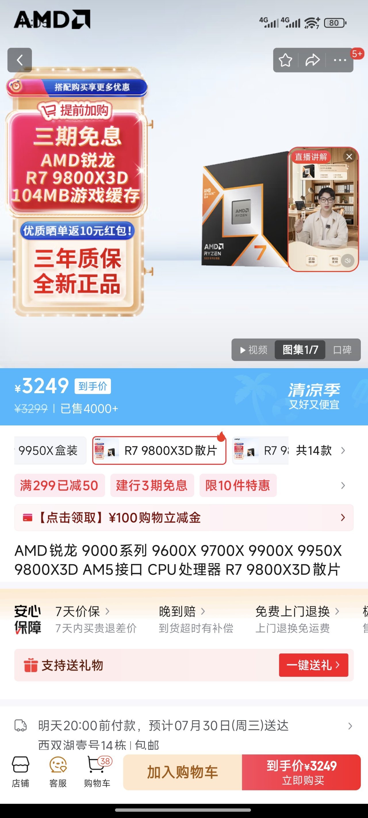 7800X3D 约 2200 元,但需高端水冷才能稳定(负载高时易降频抽帧);