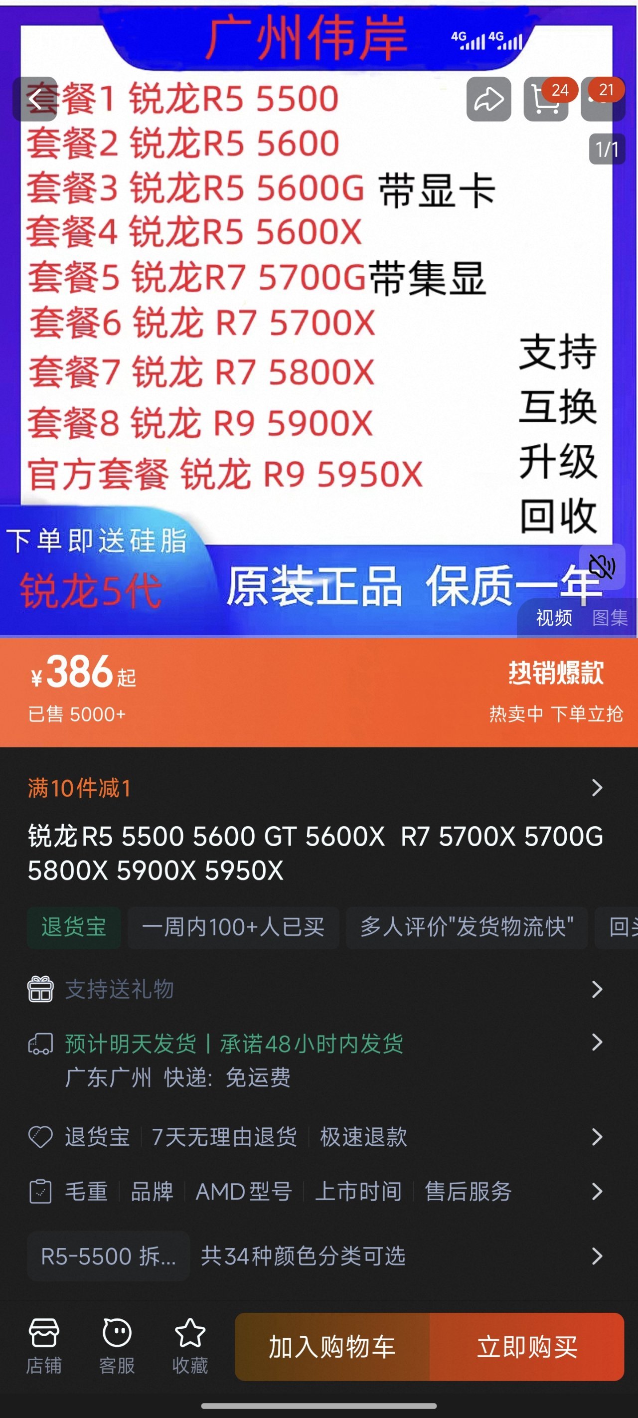 AMD 锐龙 5 5600,5500+16mb三缓版,提升游戏性能(cpuz 5000)
